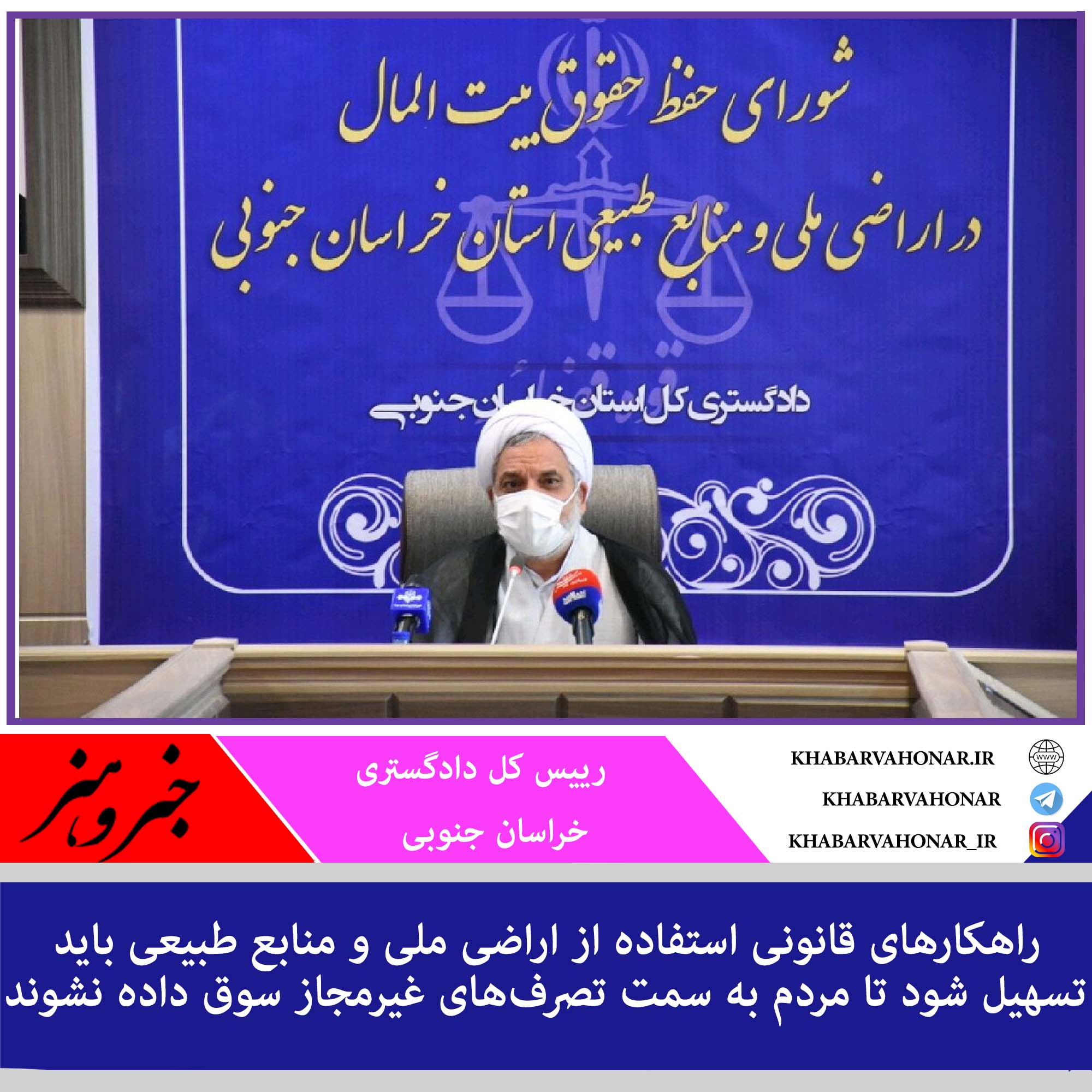 رییس کل دادگستری خراسان جنوبی گفت: راهکارهای قانونی استفاده از اراضی ملی و منابع طبیعی باید تسهیل شود تا مردم به سمت تصرفهای غیرمجاز سوق داده نشوند.