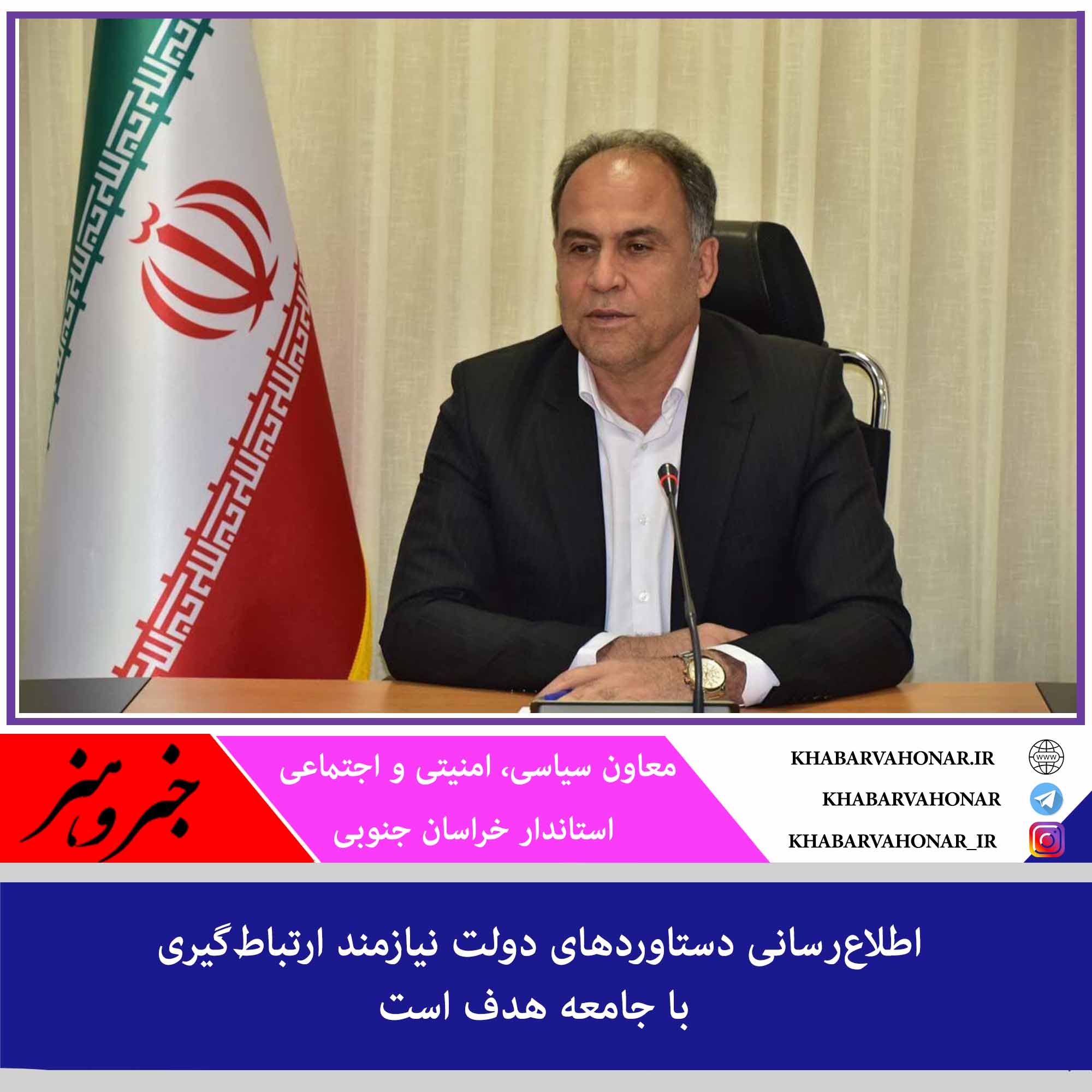 معاون سیاسی، امنیتی و اجتماعی استاندار خراسان جنوبی گفت: اطلاعرسانی دستاوردهای دولت نیازمند ارتباطگیری با گروههای هدف است و تدبیری اندیشیده شود تا در راستای ناامیدسازی دشمن و ایجاد اعتماد عمومی، جریان اطلاعرسانی از بسترهای متعدد ادامه یابد.