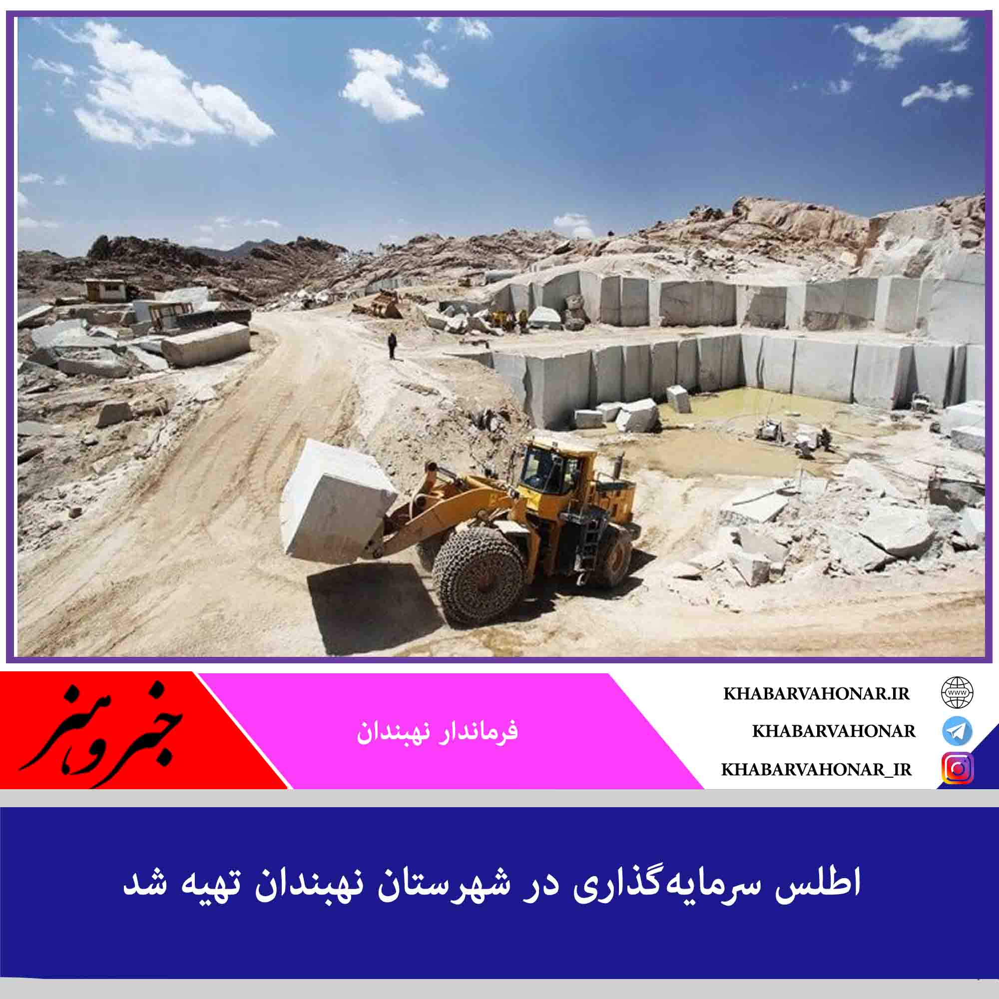 فرماندار نهبندان گفت: اطلس سرمایهگذاری شهرستان نهبندان تهیه شده و پیگیریهای ویژهای برای سرمایهگذاری در این شهرستان در حال انجام است.