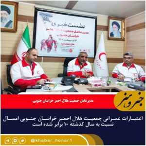 مدیرعامل جمعیت هلال احمر خراسان جنوبی گفت: اعتبارات عمرانی جمعیت هلال احمر استان امسال نسبت به سال گذشته ۱۰ برابر شده و سه پروژه بزرگ با اعتبار ۳۵ میلیارد تومان در حال انجام است.