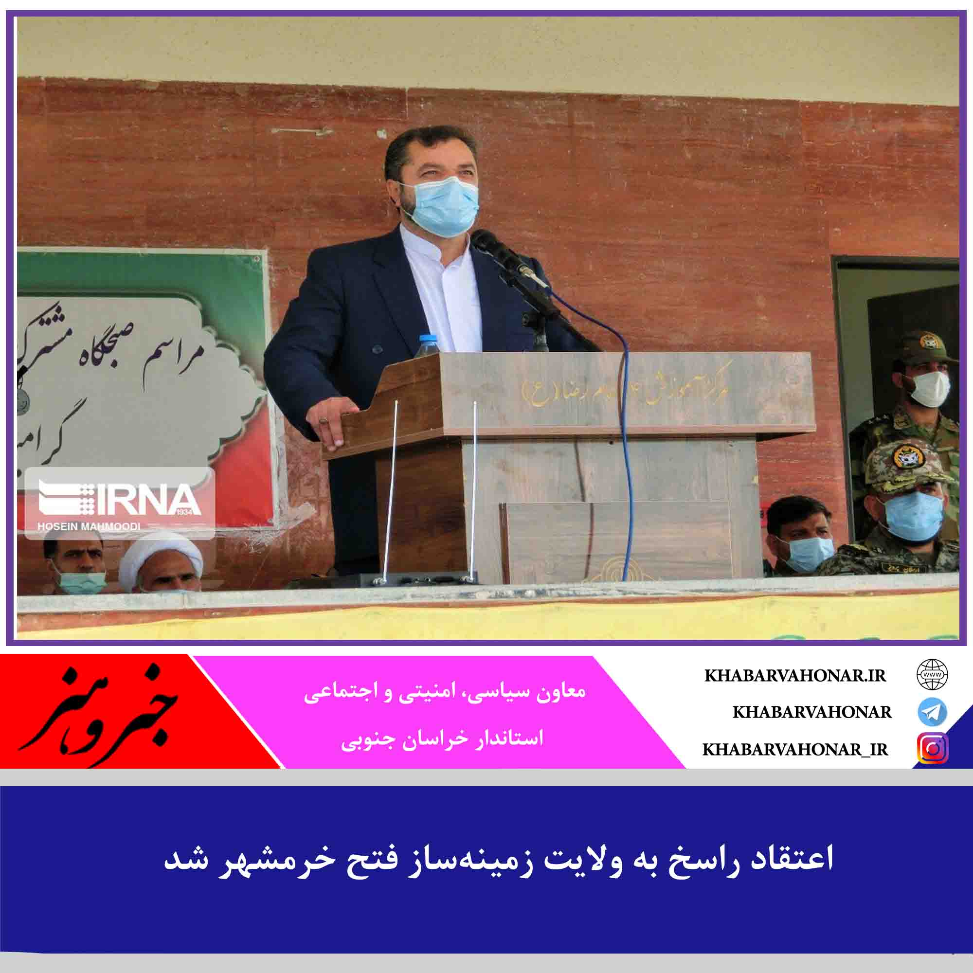معاون سیاسی، امنیتی و اجتماعی استاندار خراسان جنوبی گفت: اعتقاد راسخ مردم به ولایت زمینهساز فتح خرمشهر و آغاز پیروزیهای مکرر جبهه حق علیه باطل شد که بدون هیچگونه امکاناتی دنیا را متحیر کرد.