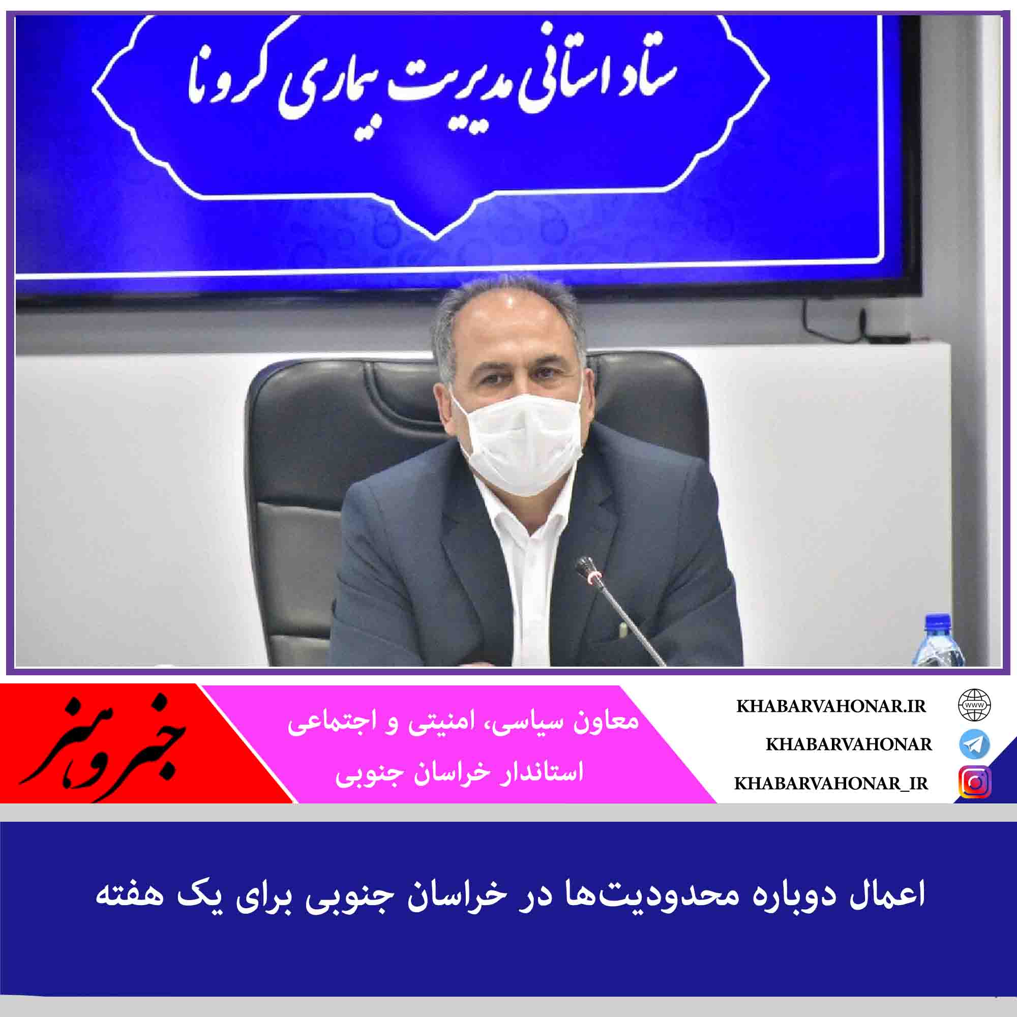 معاون سیاسی، امنیتی و اجتماعی استاندار خراسان جنوبی از اعمال دوباره برخی محدودیتها با توجه به شیوع کرونا در این استان خبر داد.