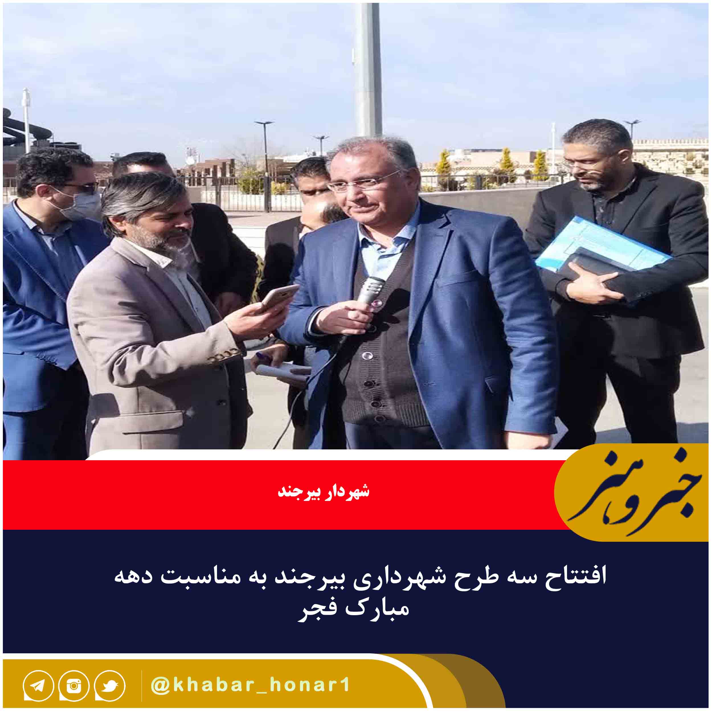 شهردار بیرجند از افتتاح سه طرح عمرانی به مناسبت دهه مبارک فجر خبر داد.دکتر مهدی بهترین شهردار بیرجند، در خصوص پروژههای شهرداری به مناسبت دهه مبارک فجر، در جمع خبرنگاران اظهار کرد: یکی از پروژههای افتتاحی در شهر بیرجند به مناسبت دهه مبارکه فجر، بازارچه صنایعدستی در ضلع شمالی فرهنگسرای بیرجند است.