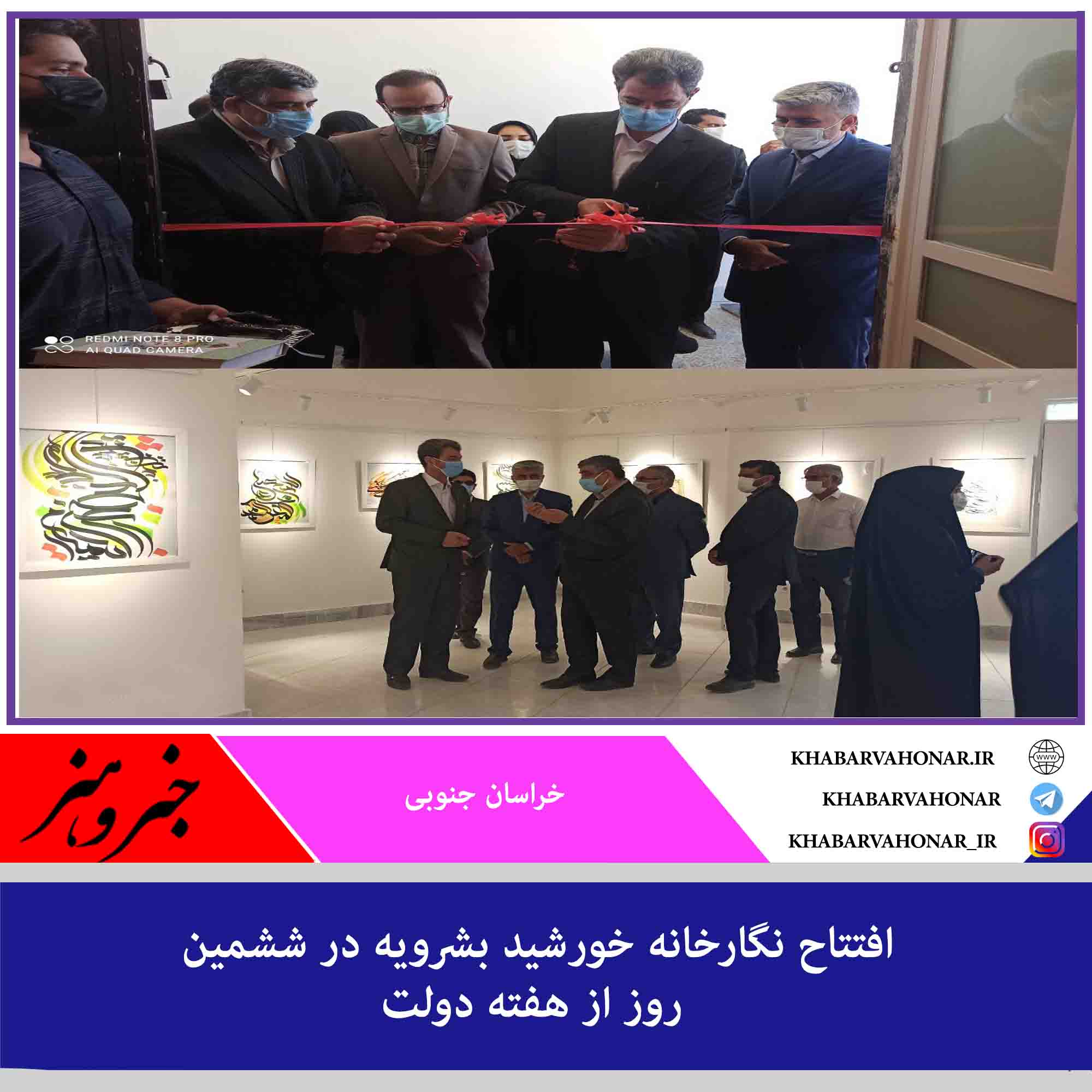 نگارخانه خورشید شهرستان بشرویه با حضور جمعی از مسئولان استانی و شهرستانی، ظهر یکشنبه ۷ شهریورماه جاری همزمان با هفته دولت، افتتاح شد.