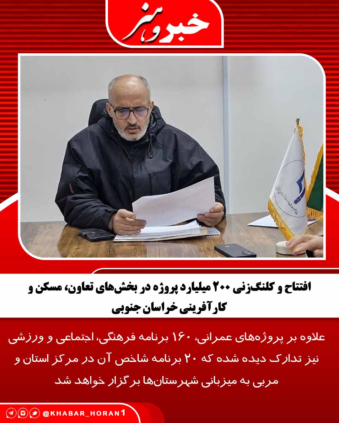 افتتاح و کلنگ‌زنی ۲۰۰ میلیارد پروژه در بخش‌های تعاون، مسکن و کارآفرینی خراسان جنوبی