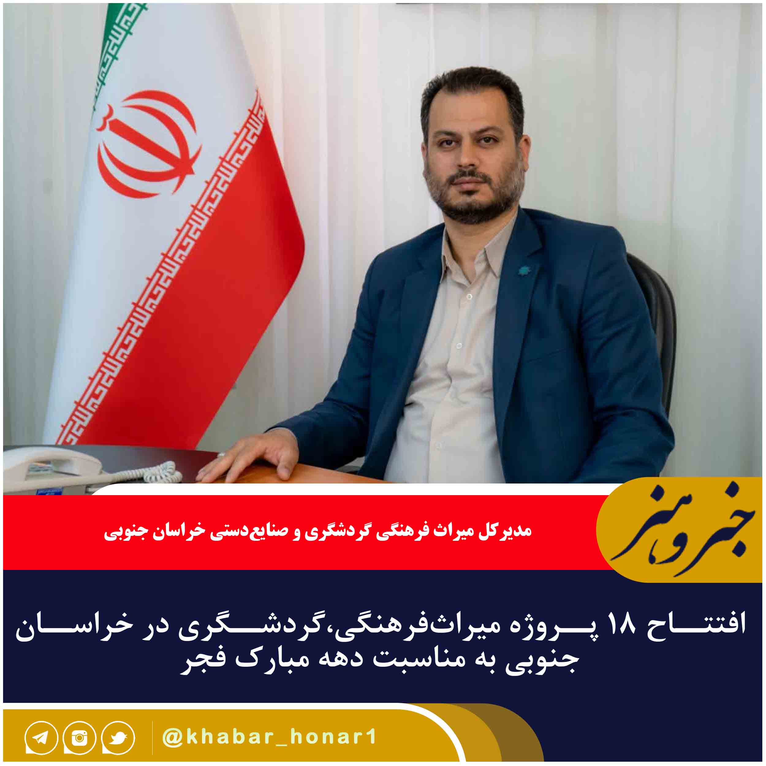 مدیرکل میراث فرهنگی گردشگری و صنایعدستی خراسان جنوبی گفت: به مناسبت دهه مبارک فجر ۱۸ پروژه در استان افتتاح میشود.