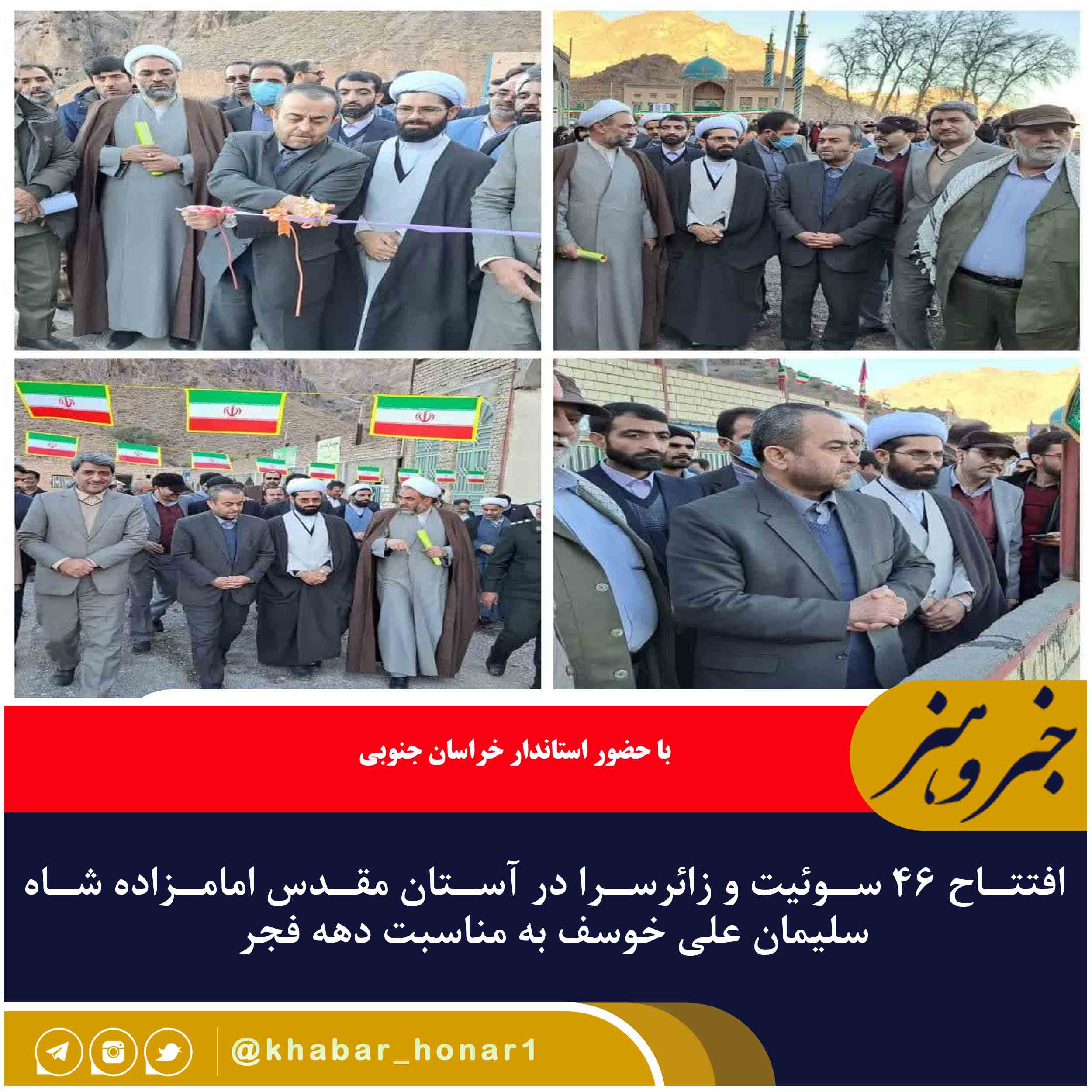 با حضور استاندار خراسان جنوبی ۴۶ سوئیت و زائرسرا به متراژ ۹۶۶ متر مربع در آستان مقدس امامزاده شاه سلیمان علی با اعتبار پنج میلیارد و ۴۸۰ میلیون تومان به بهرهبرداری رسید.