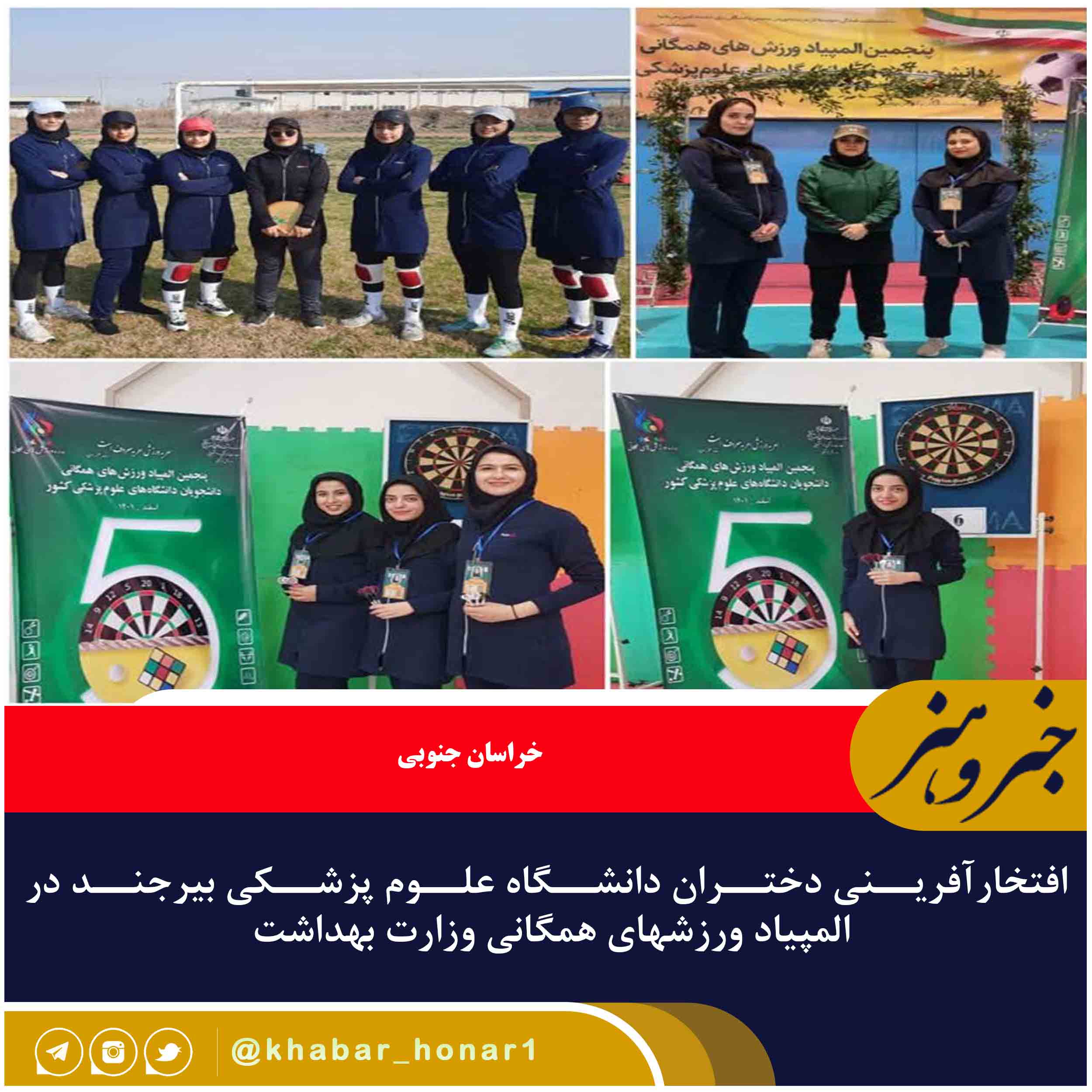 یک قهرمانی، یک نایب قهرمانی و دو مقام سومی رهاورد دانشجویان دختر دانشگاه علوم پزشکی بیرجند در پنجمین المپیاد ورزشی دانشجویان علوم پزشکی کشوردر پنجمین المپیاد ورزشهای همگانی دانشجویان دانشگاههای علوم پزشکی کشور که در خزرآباد ساری برگزار شد تیم فریزبی دانشجویان دختر دانشگاه علوم پزشکی بیرجند قهرمان این دور از رقابتها شد.