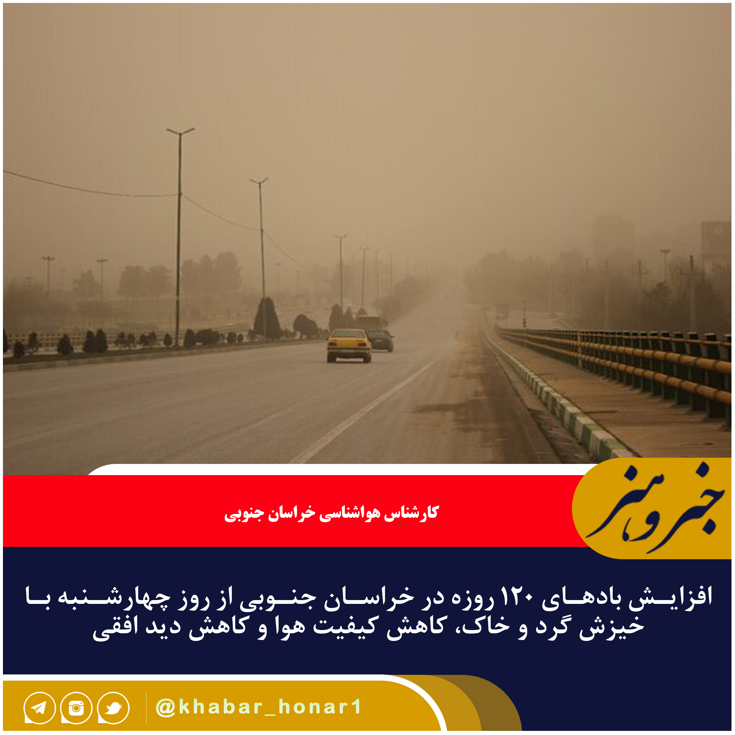وی ادامه داد: اما با تقویت بادهای ۱۲۰ روزه از روز چهارشنبه وزش باد شدید، همراه با خیزش گرد و خاک، کاهش کیفیت هوا و کاهش دید افقی به همراه آسمانی غبارآلود در استان پیشبینی می شود.