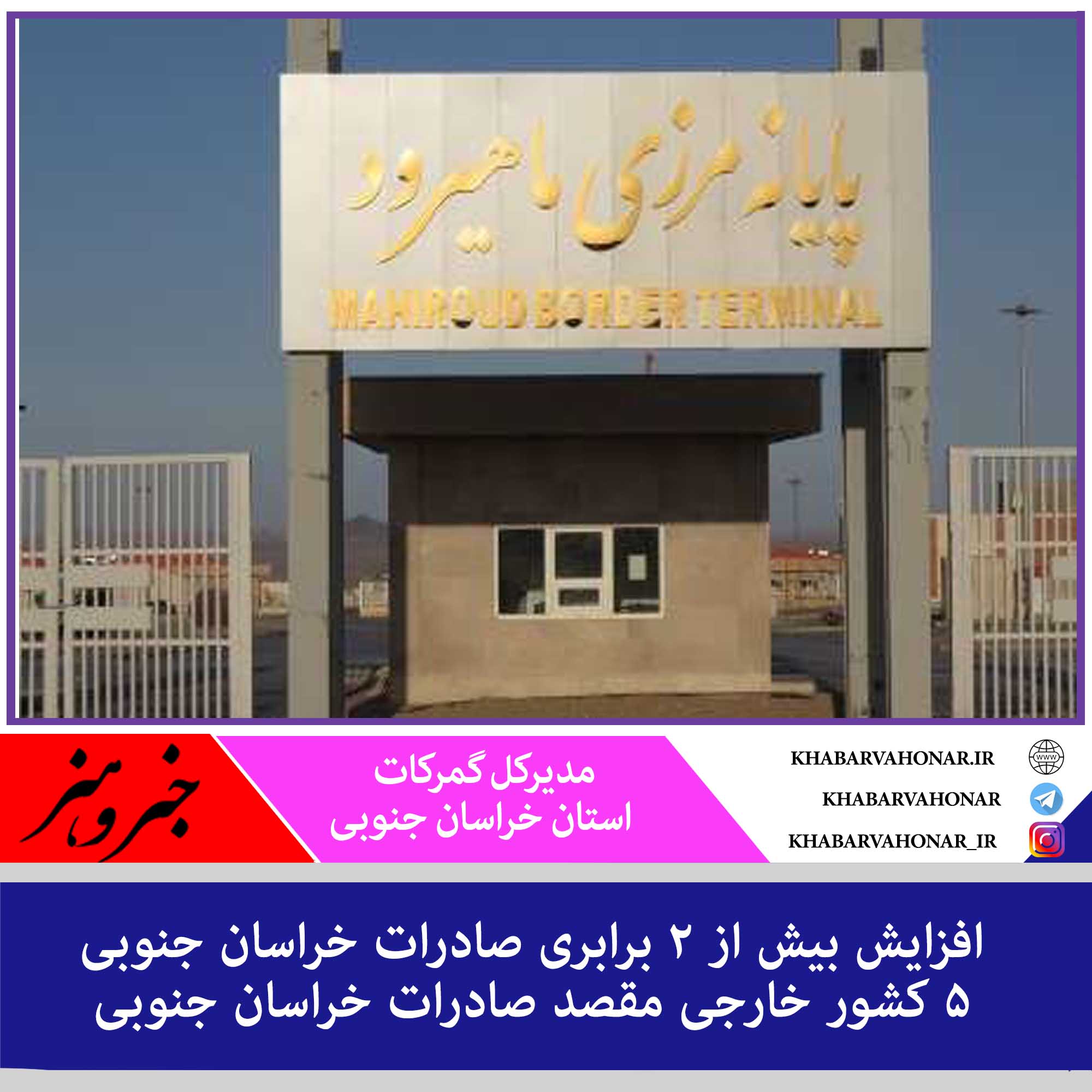 صادرات خراسان جنوبی در ۲ ماه گذشته ، ۱۰۷ درصد افزایش داشته است.