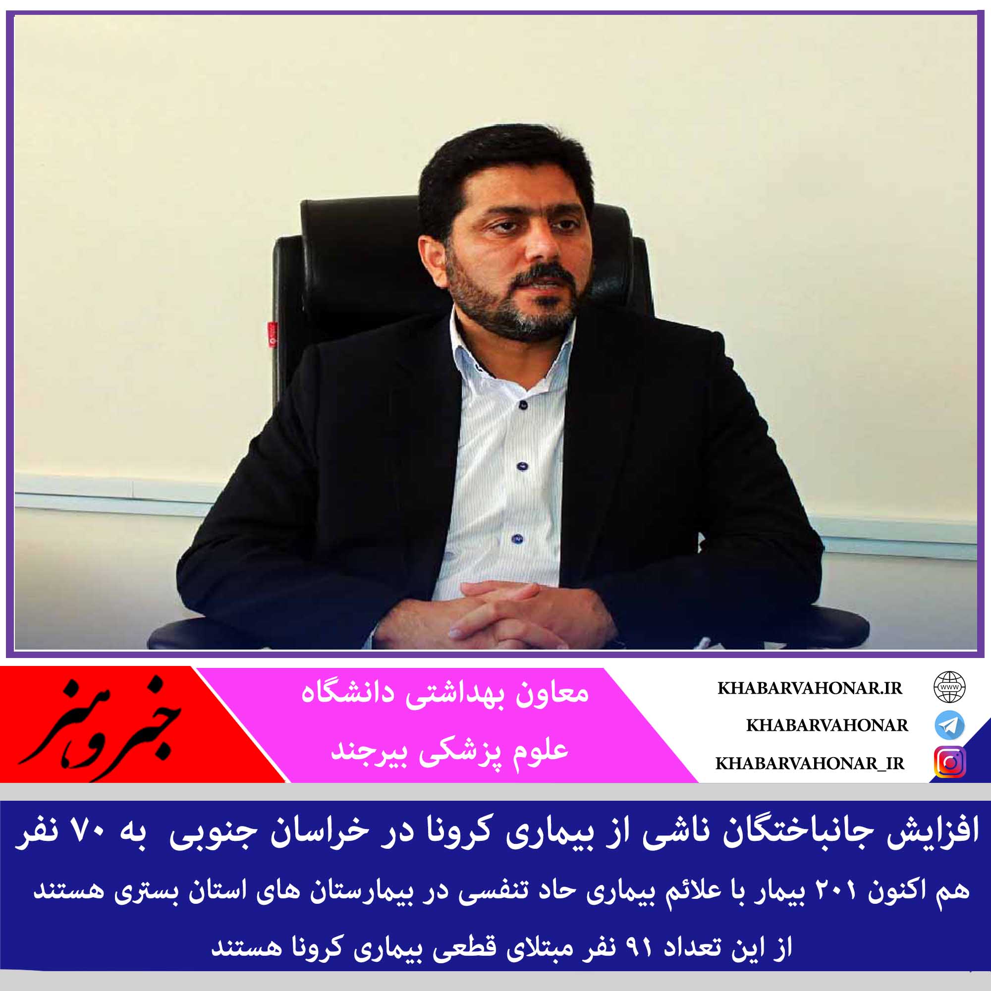 ?تعداد فوتی ها در اثر کرونا در خراسان جنوبی با فوت یک مورد جدید به ۷۰ نفر رسید.