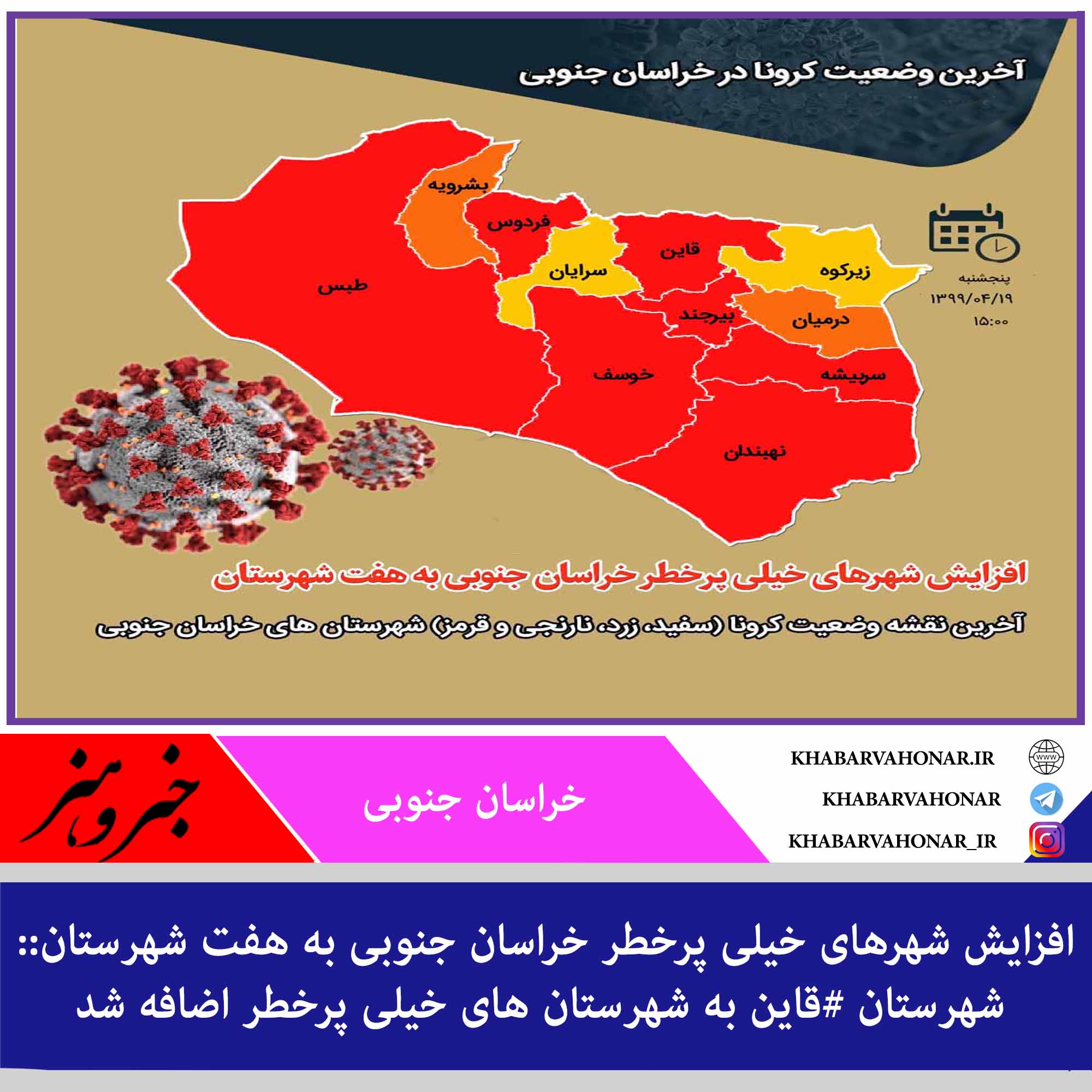 افزایش شهرهای خیلی پرخطر خراسان جنوبی به هفت شهرستان:: شهرستان #قاین به شهرستان های خیلی پرخطر اضافه شد
