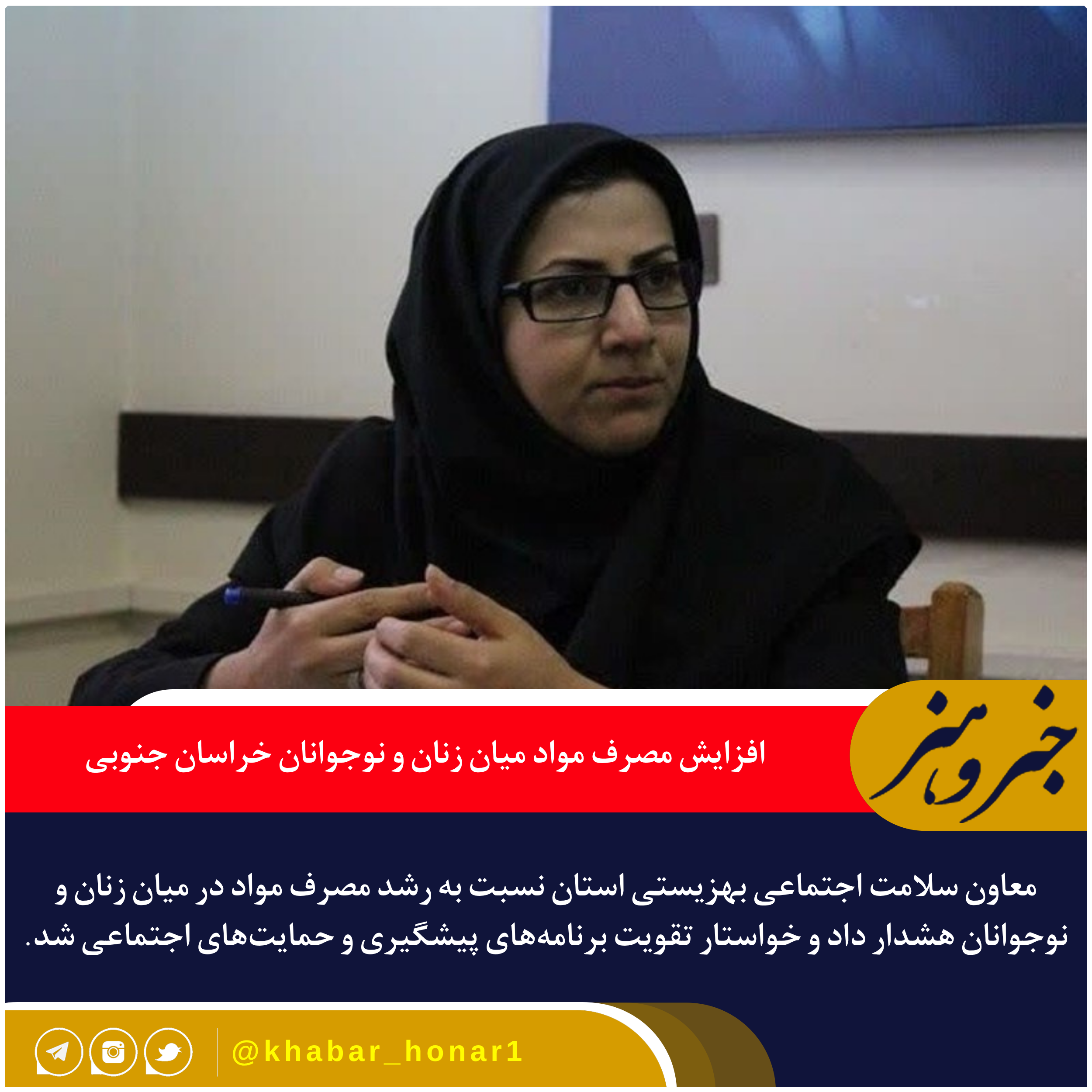 بهنـاز زال، معاون سلامت اجتماعی بهزیستی خراسان جنوبی، با هشدار درباره افزایش مصرف مواد میان زنان و نوجوانان استان گفت: اعتیاد یک آسیب اجتماعی چندبعدی است که ارتباط مستقیم با خشونت خانوادگی، کودکآزاری، طلاق و سرقت دارد. نوجوانان در برخی مناطق و خانوادهها در سنین پایین در معرض مصرف مواد قرار میگیرند و کنجکاوی، فشار همسالان و نبود فضاهای سالم تفریحی و ورزشی آنها را به این مسیر سوق میدهد.