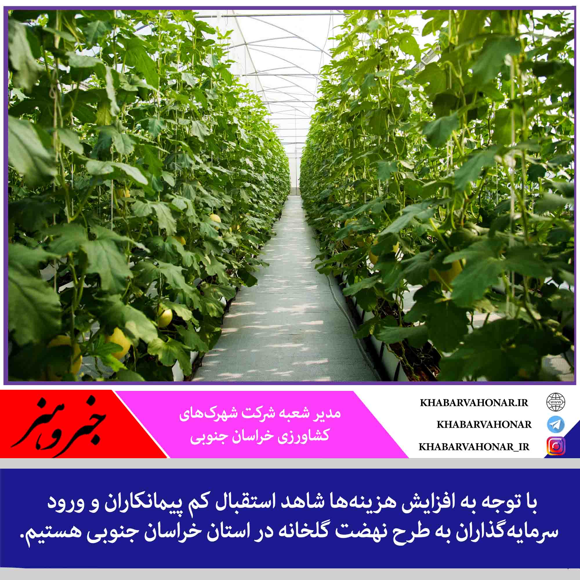 مهدی سورگی افزود: با توجه به افزایش هزینهها شاهد استقبال کم پیمانکاران و ورود سرمایهگذاران به طرح نهضت گلخانه در استان خراسان جنوبی هستیم.