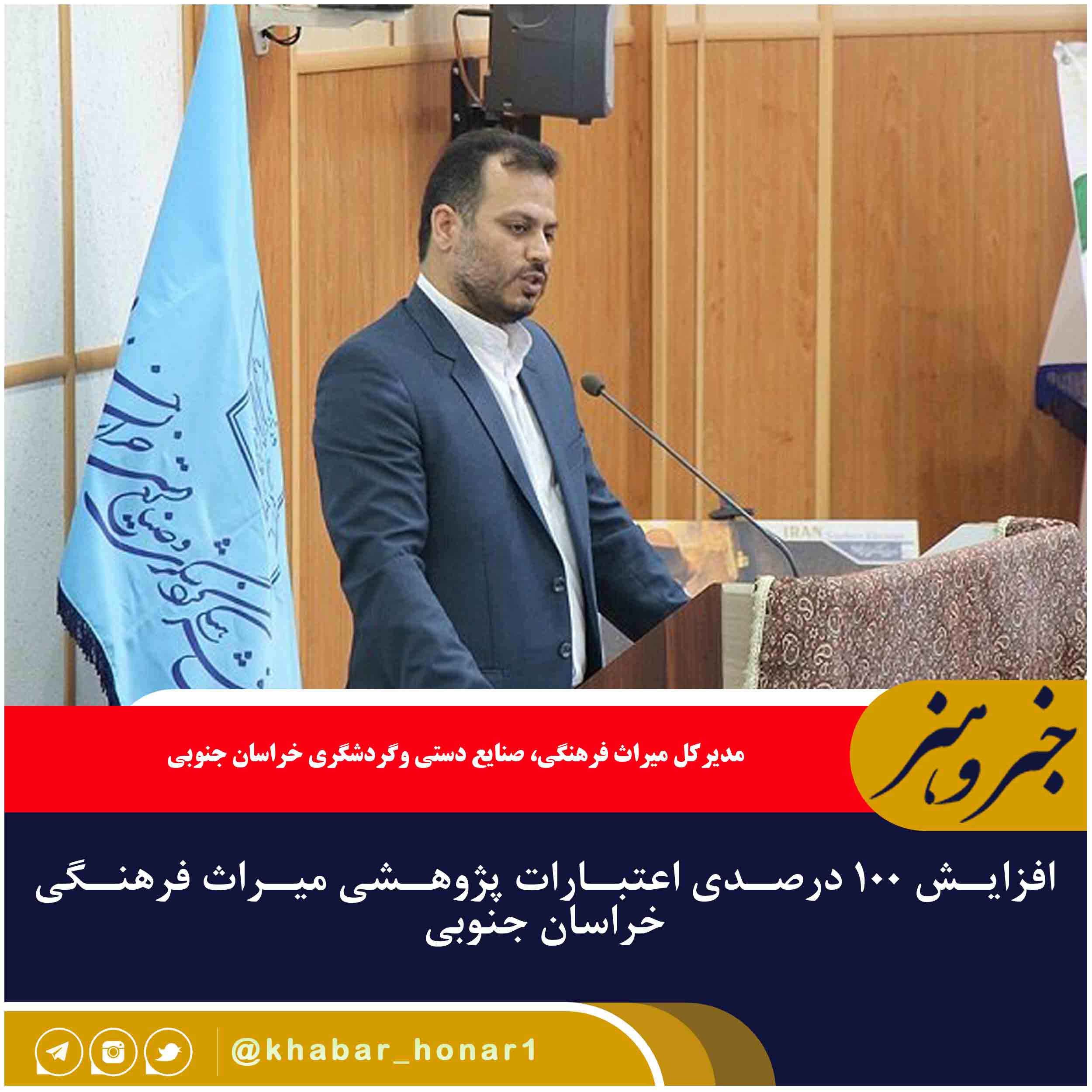 مدیرکل میراث فرهنگی، صنایع دستی وگردشگری خراسان جنوبی از افزایش ۱۰۰ درصدی اعتبارات پژوهشی این اداره کل در سال جاری نسبت به سال گذشته خبر داد.