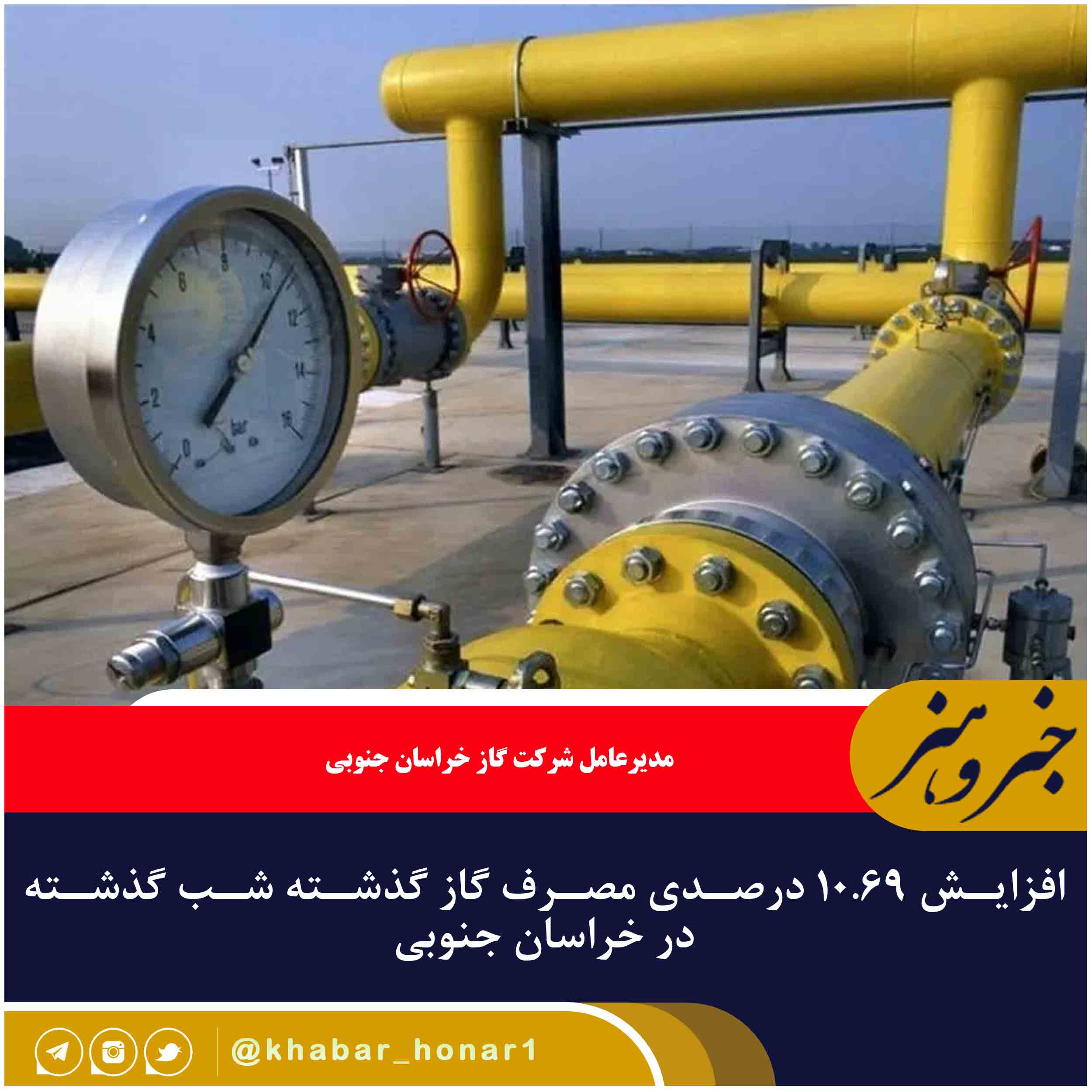 مصرف گاز شب گذشته در مقایسه با ششم اسفند پارسال ۱۰.۶۹ درصد افزایش یافت.