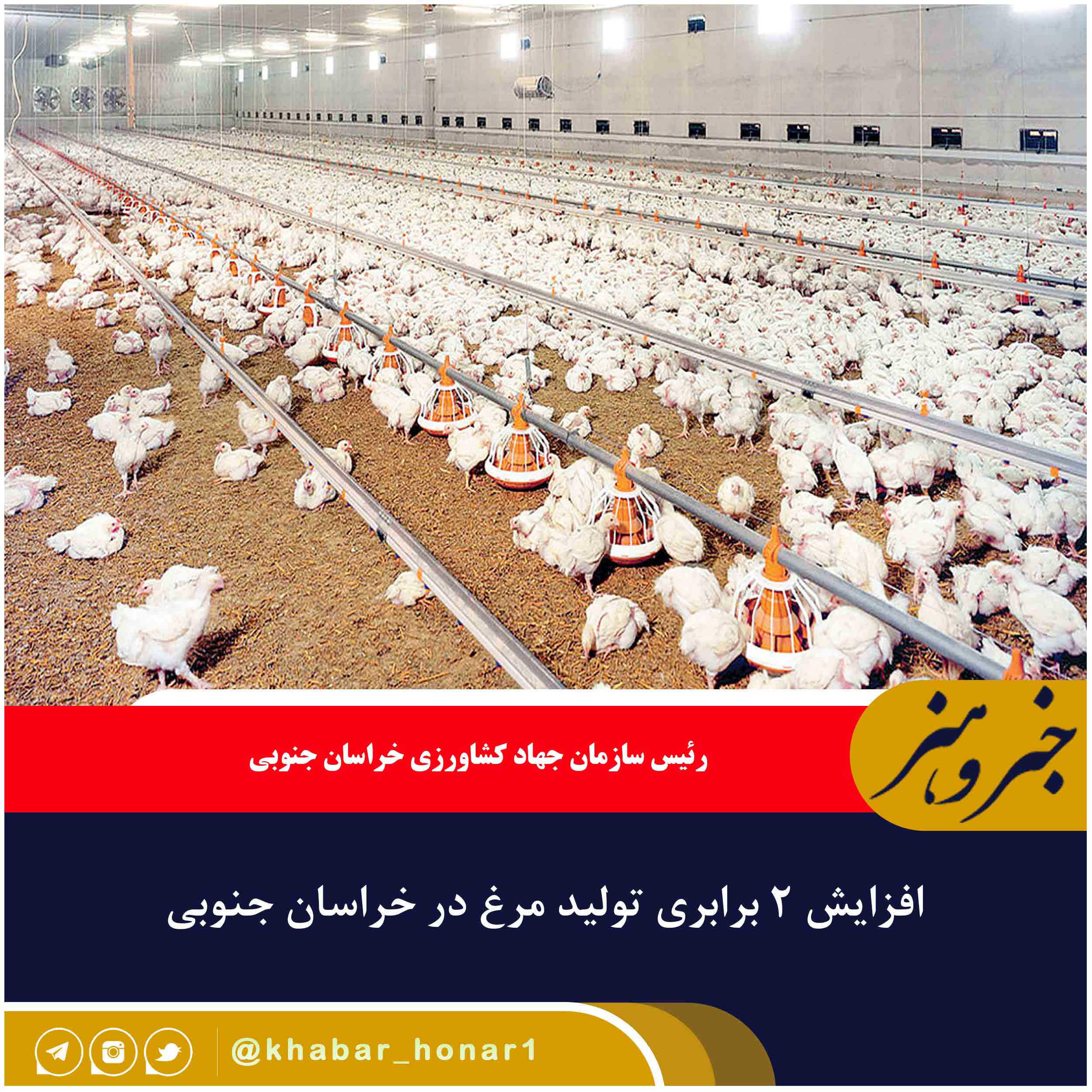 رئیس سازمان جهاد کشاورزی خراسان جنوبی گفت: تولید مرغ گرم نسبت به ابتدای اردیبهشت در استان بیش از ۲ برابر افزایش یافته است