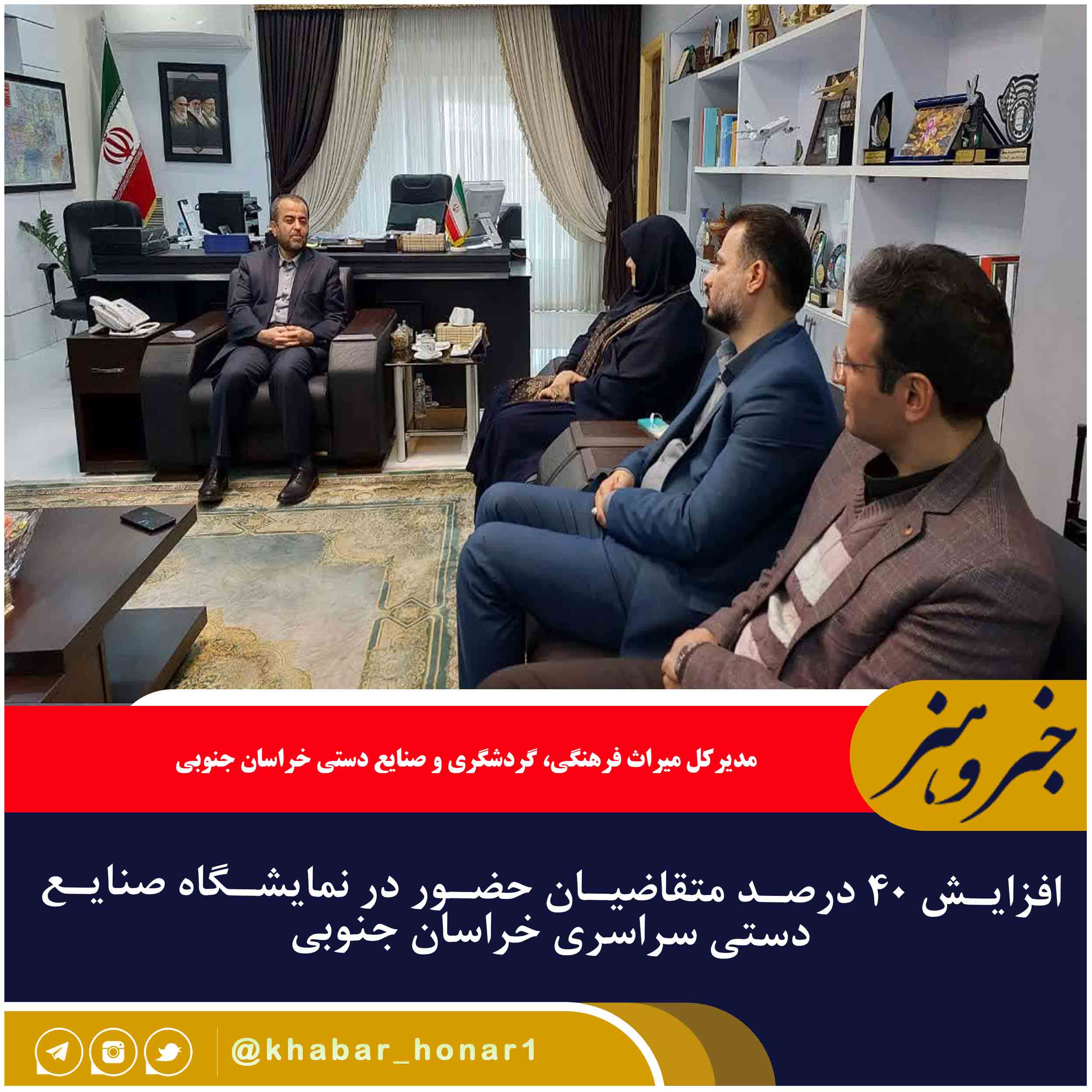 هادی شاهوردی در دیدار معاون صنایع دستی کشور یا استاندار خراسان جنوبی، بیان کرد: بر اساس سیاستهای وزارتخانه در ۹ منطقه قرار شد نمایشگاههای صنایع دستی برگزار شود که خراسانجنوبی نیز با حمایتهای معاونت میراث فرهنگی به این لیست اضافه شد.