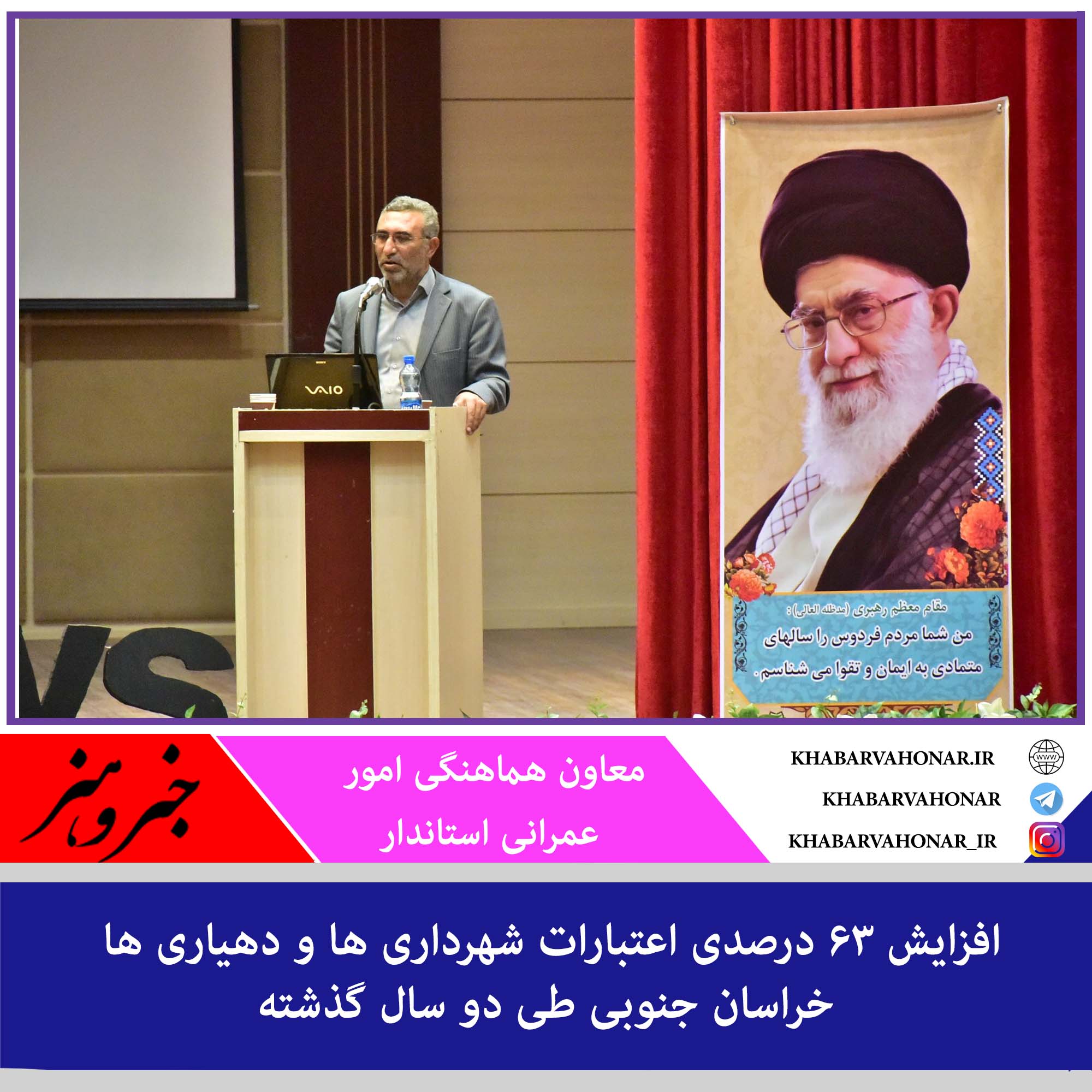 ?معاون استاندار با اشاره به پیگیریهای استاندار در راستای تقویت شهرداری ها و دهیاری های استان اظهار داشت: افزایش ۶۳ درصدی اعتبارات شهرداری ها و دهیاری ها طی دو سال گذشته از مهمترین پیامدهای این پیگیری هاست.