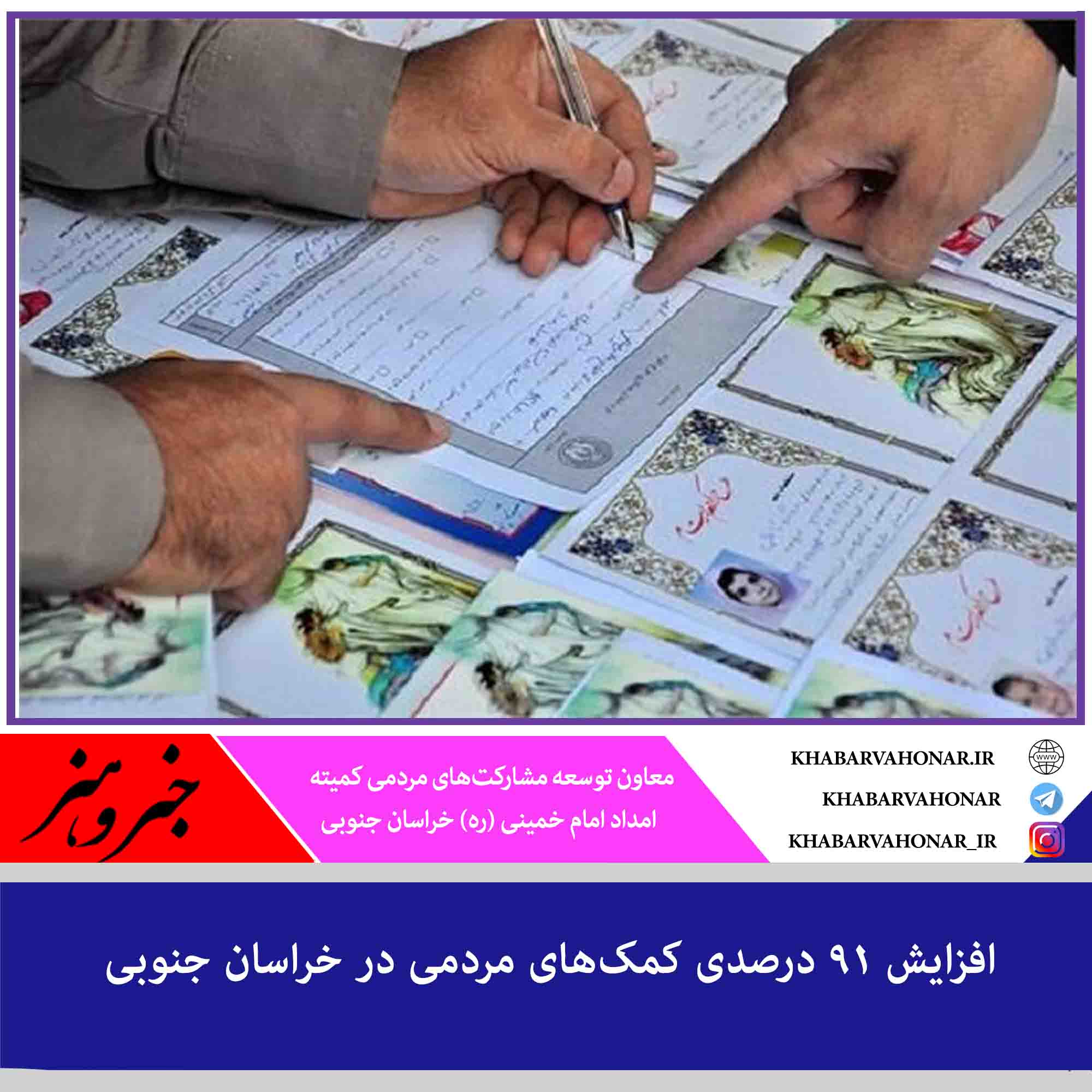 معاون توسعه مشارکتهای مردمی کمیته امداد امام خمینی (ره) خراسان جنوبی از جمعآوری ۱۰۳ میلیارد و ۳۷۰ میلیون تومان کمکهای مردمی در استان خبر داد و گفت: این میزان کمکهای مردمی در سال جاری نسبت به سال گذشته ۹۱ درصد افزایش داشته است.