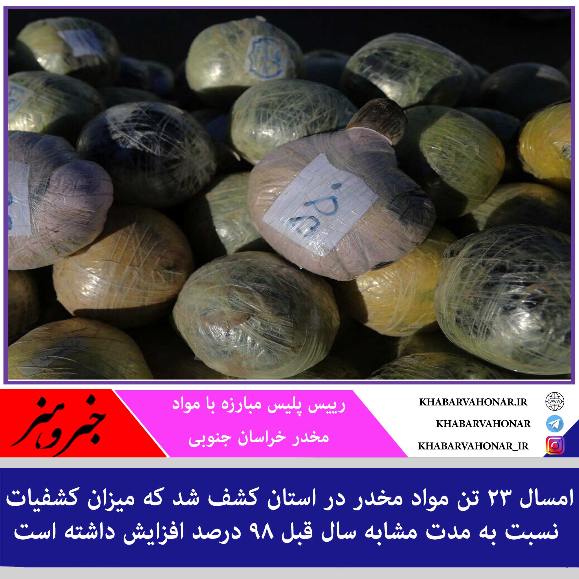رییس پلیس مبارزه با مواد مخدر خراسان جنوبی گفت: امسال ۲۳ تن مواد مخدر در استان کشف شد که میزان کشفیات نسبت به مدت مشابه سال قبل ۹۸ درصد افزایش داشته است.