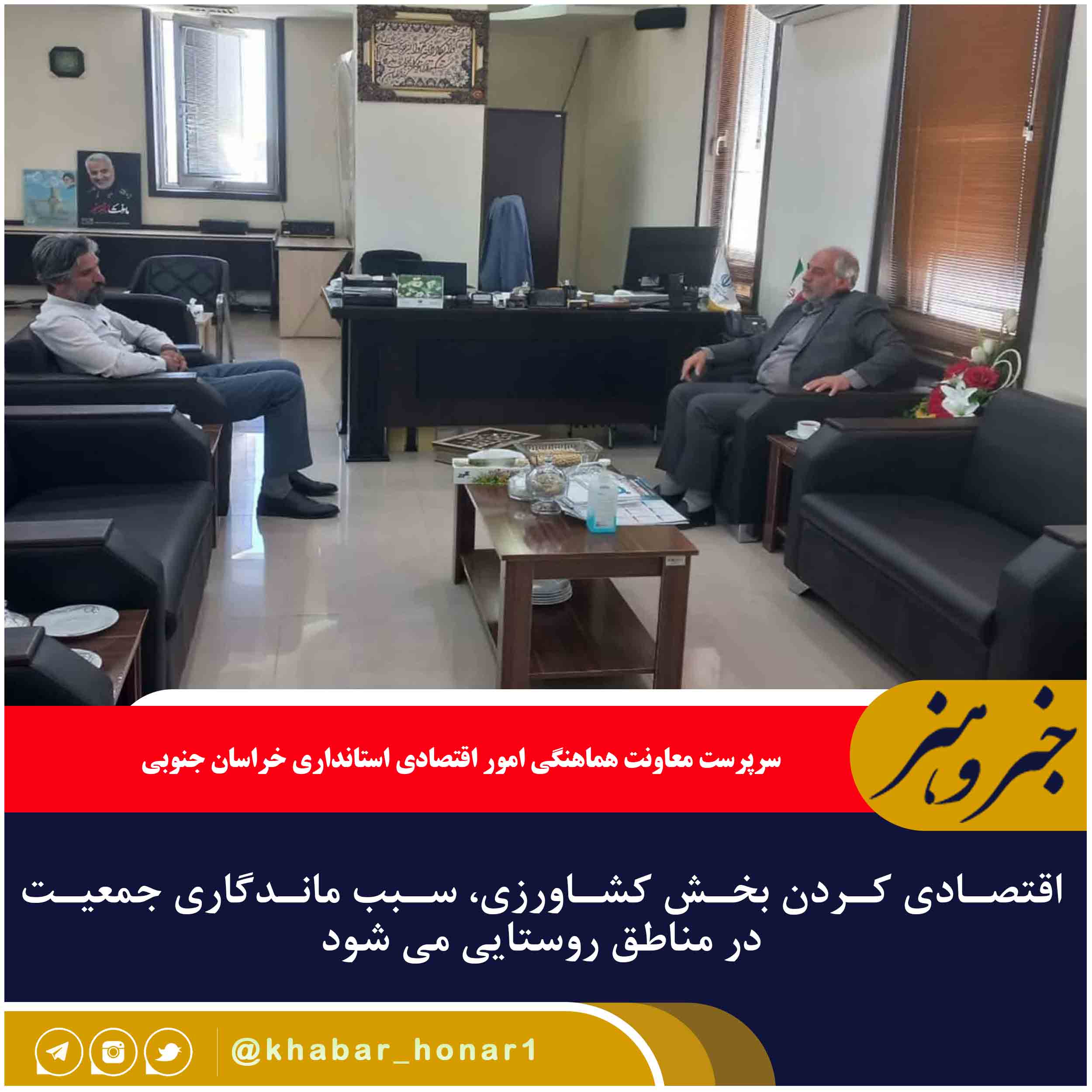 ?سرپرست معاونت هماهنگی امور اقتصادی استانداری خراسان جنوبی گفت: اقتصادی کردن بخش کشاورزی، سبب ماندگاری جمعیت در مناطق روستایی می شود.