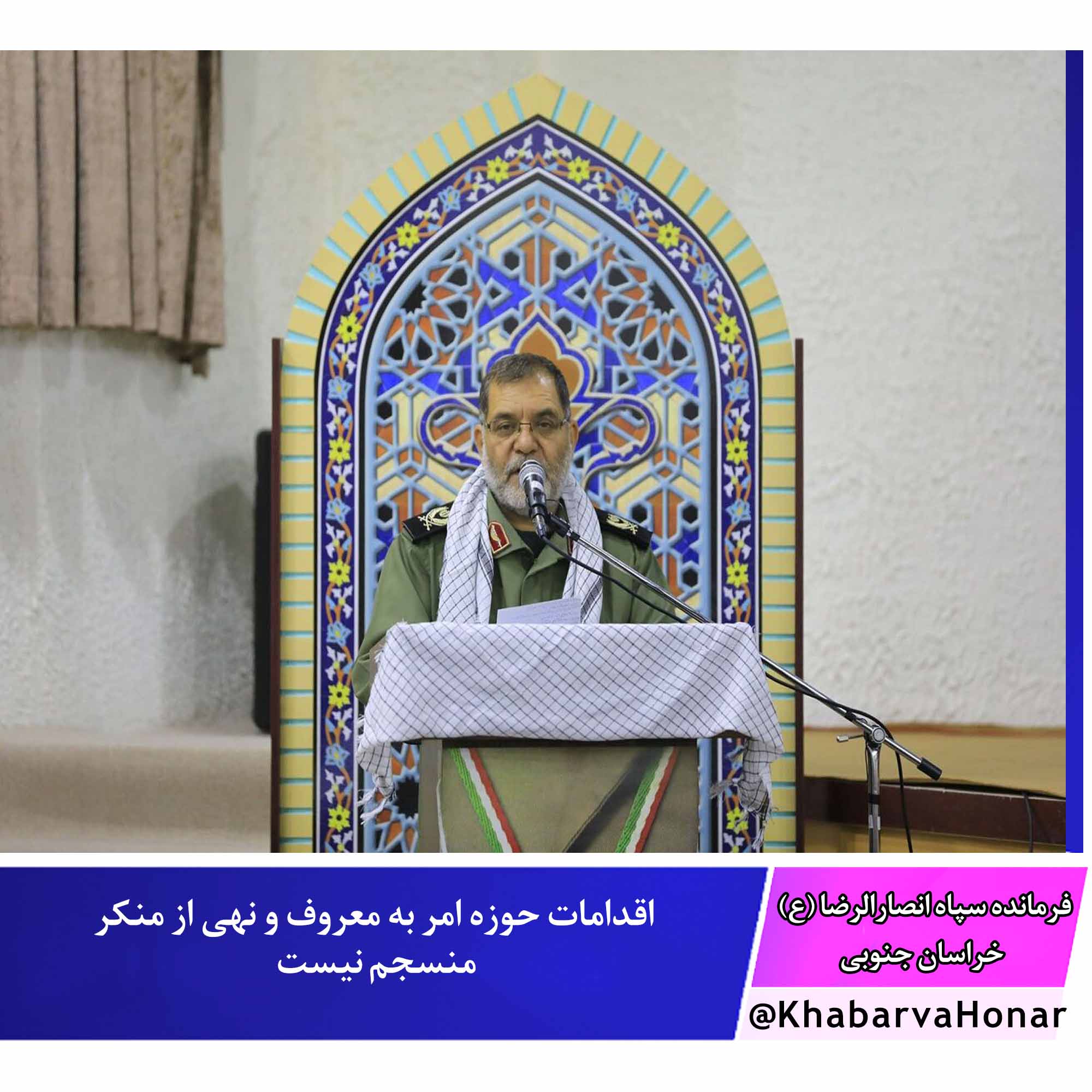 فرمانده سپاه انصارالرضا(ع) خراسان جنوبی با اشاره به تصویب قانون امر به معروف و نهی از منکر در سال ۹۴ گفت: اکثر مدیران حتی از وجود این قانون هم بی اطلاع هستند این در حالی است که قانون امر به معروف و نهی از منکر یک قانون عمومی بوده اما مظلوم واقع شده است.