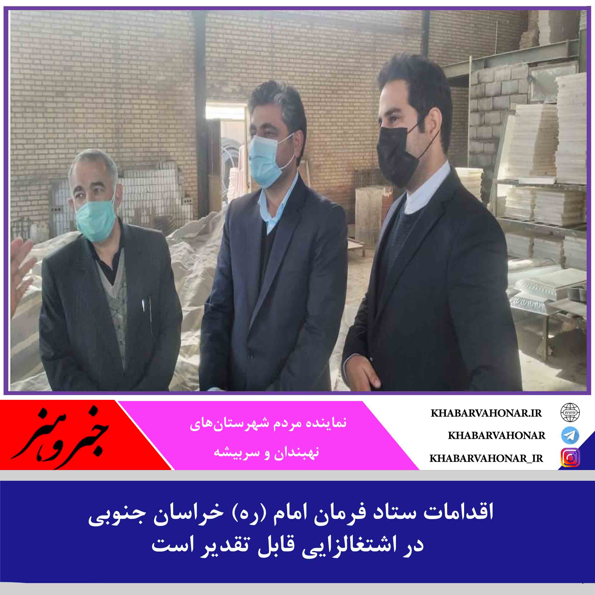 به همت ستاد اجرایی فرمان حضرت امام (ره) اقدامات خوبی برای اشتغال زایی و تولید در خراسان جنوبی انجام شده است.