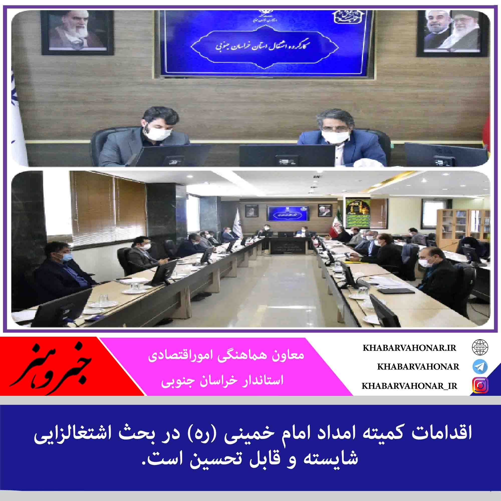 ?معاون هماهنگی امور اقتصادی استاندار خراسان جنوبی گفت: اقدامات کمیته امداد امام خمینی (ره) در بحث اشتغالزایی شایسته و قابل تحسین است.