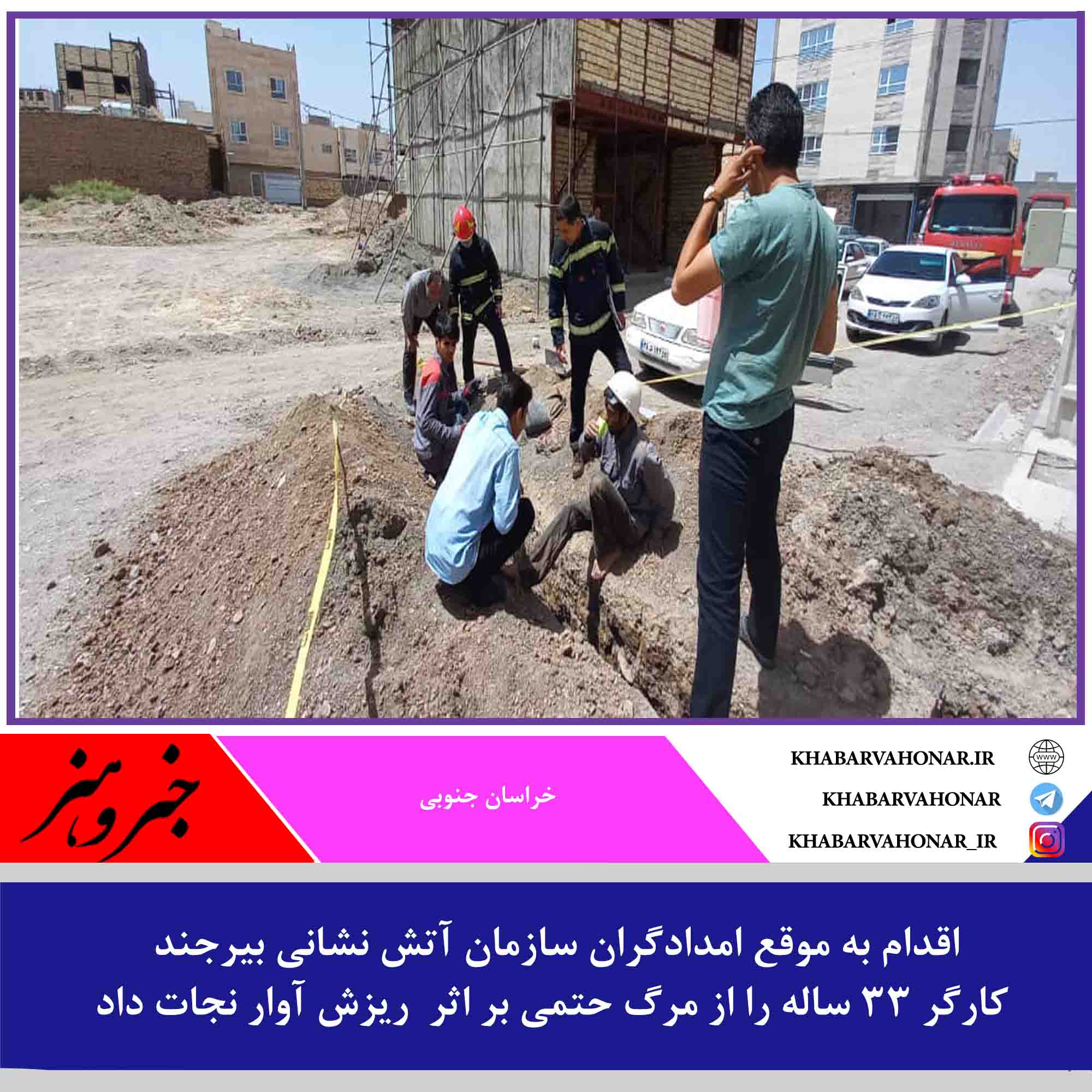 عدم رعایت نکات ایمنی در حفر کانال فاضلاب موجب مصدوم شدن کارگر ۳۳ ساله شد
