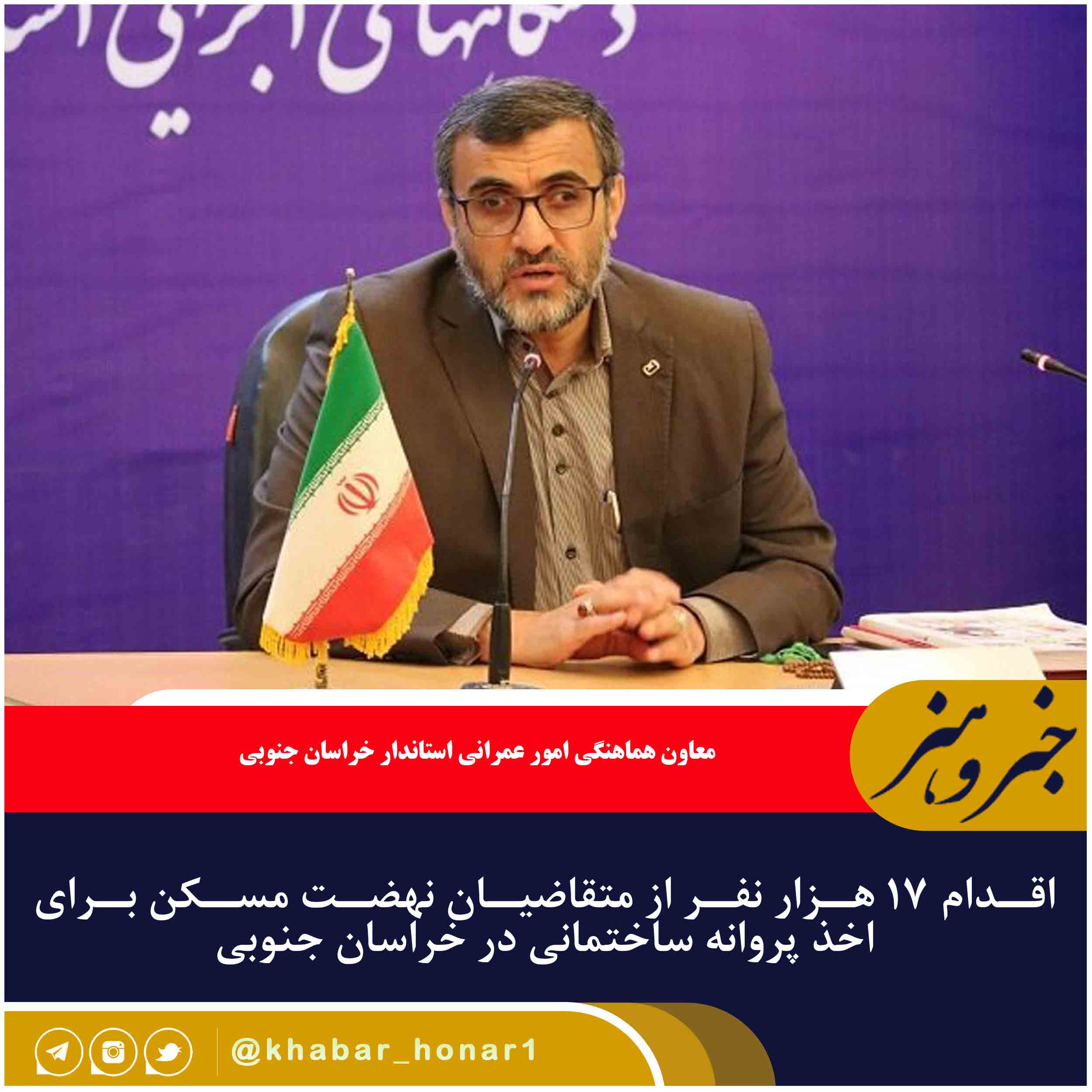 معاون هماهنگی امور عمرانی استاندار خراسان جنوبی گفت: از ۲۲ هزار و ۷ نفری که به آنها زمین واگذار شده ۱۷ هزار نفر از متقاضیان نهضت ملی مسکن برای اخذ پروانه ساختمانی اقدام کرده اند.