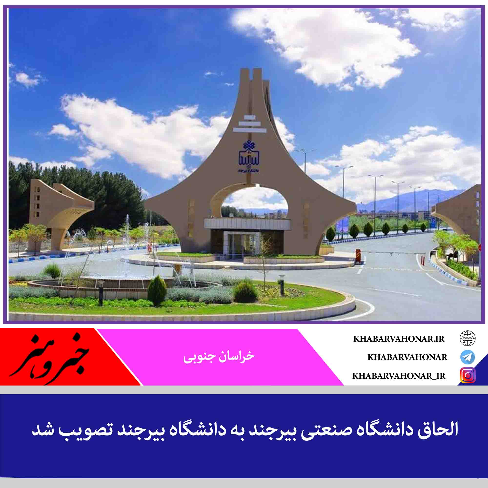 الحاق دانشگاه صنعتی بیرجند به دانشگاه بیرجند در چارچوب طرح ساماندهی موسسات آموزش عالی استان خراسان جنوبی به تصویب رسید.