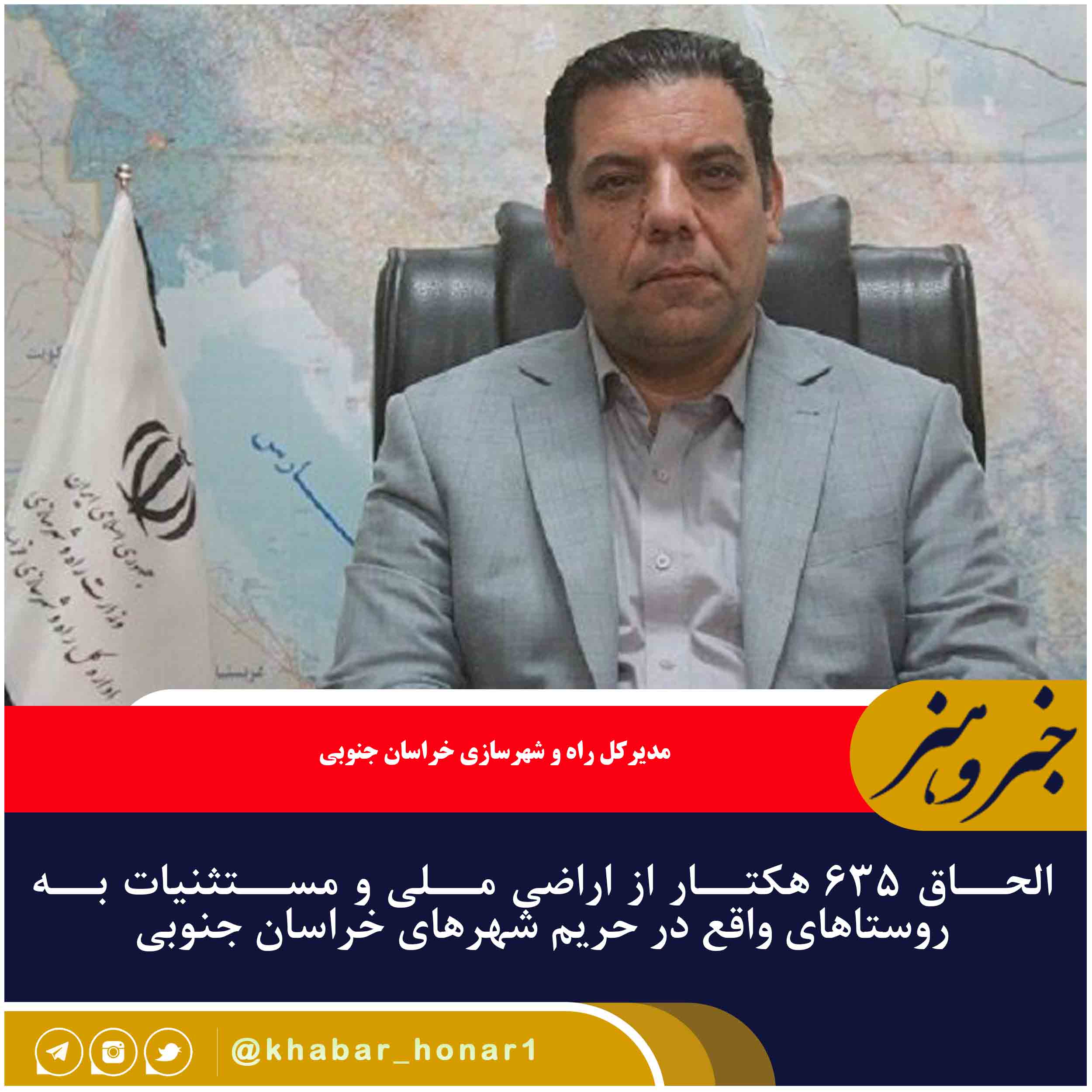 مدیرکل راه و شهرسازی خراسان جنوبی گفت: ۶۳۵ هکتار از اراضی ملی و مستثنیات به روستاهای واقع در حریم شهرهای خراسان جنوبی الحاق شد.