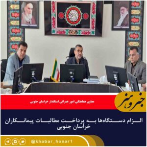 معاون هماهنگی امور عمرانی استاندار خراسان جنوبی گفت: دستگاههای اجرایی باید با تامین اعتبار لازم، نسبت به پرداخت مطالبات و بدهی به پیمانکاران اقدام کنند.