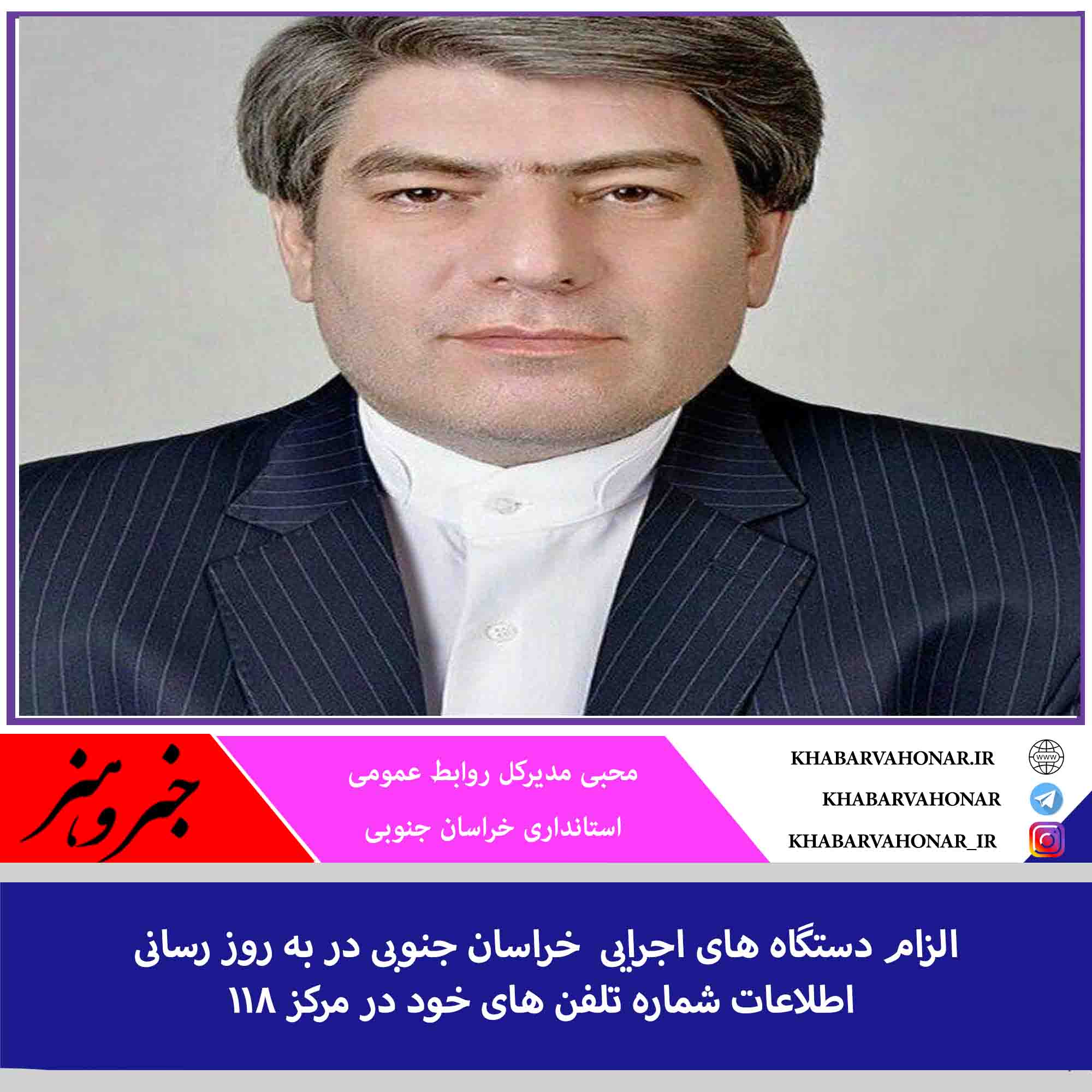 محبی مدیرکل روابط عمومی استانداری خراسان جنوبی با بیان این مطلب خاطر نشان کرد: همه مسئولان و مدیران روابط عمومی های دستگاه های اجرایی در اسرع وقت نسبت به، به روزرسانی اطلاعات ارتباطی خود در سامانه ۱۱۸ شرکت مخابرات اقدام نمایند.