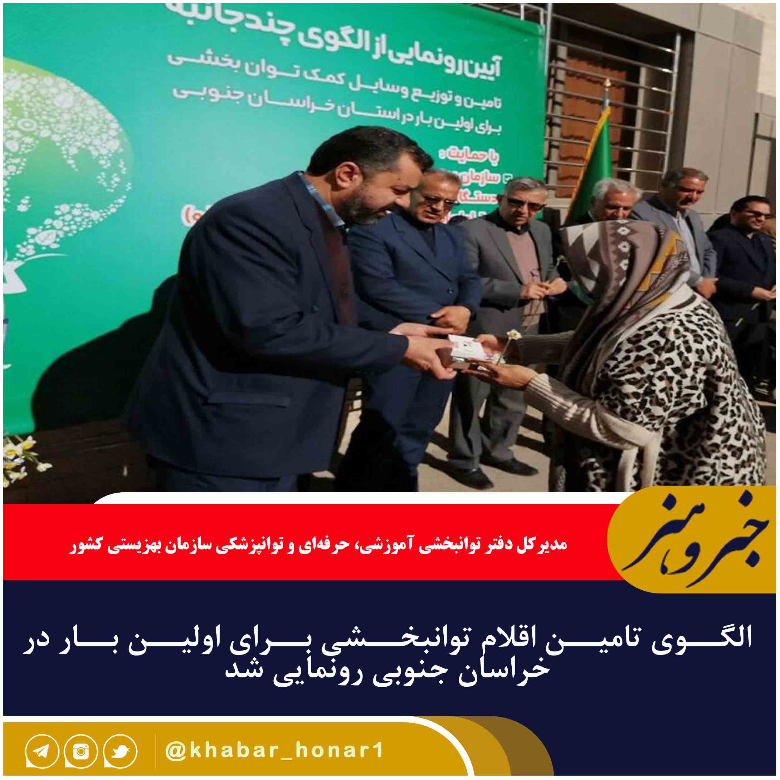 الگوی چند جانبه تامین و توزیع وسایل کمک توانبخشی اولین بار در خراسان جنوبی همزمان با هفته افراد دارای معلولیت رونمایی شد.