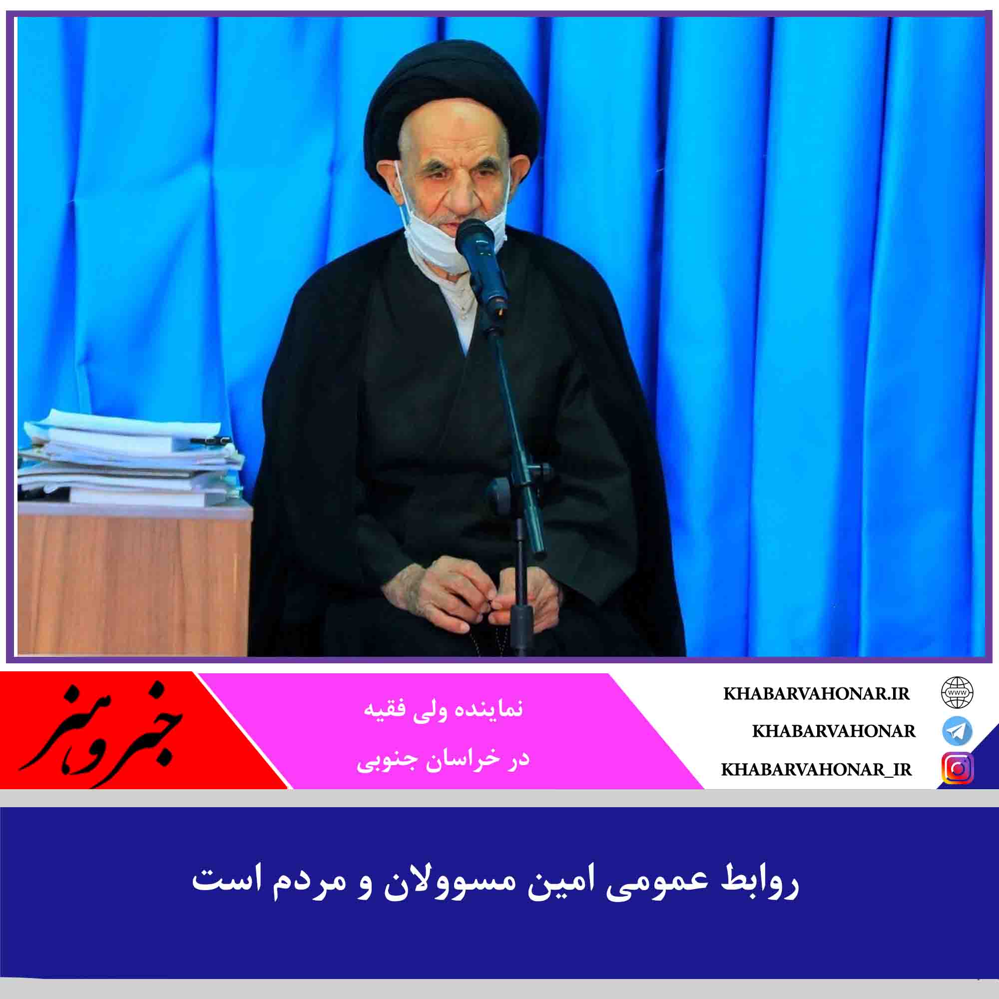 – نماینده ولی فقیه در خراسان جنوبی و امام جمعه بیرجند گفت: روابط عمومی، امانتدار دولت و امین مسوولان و مردم است.
