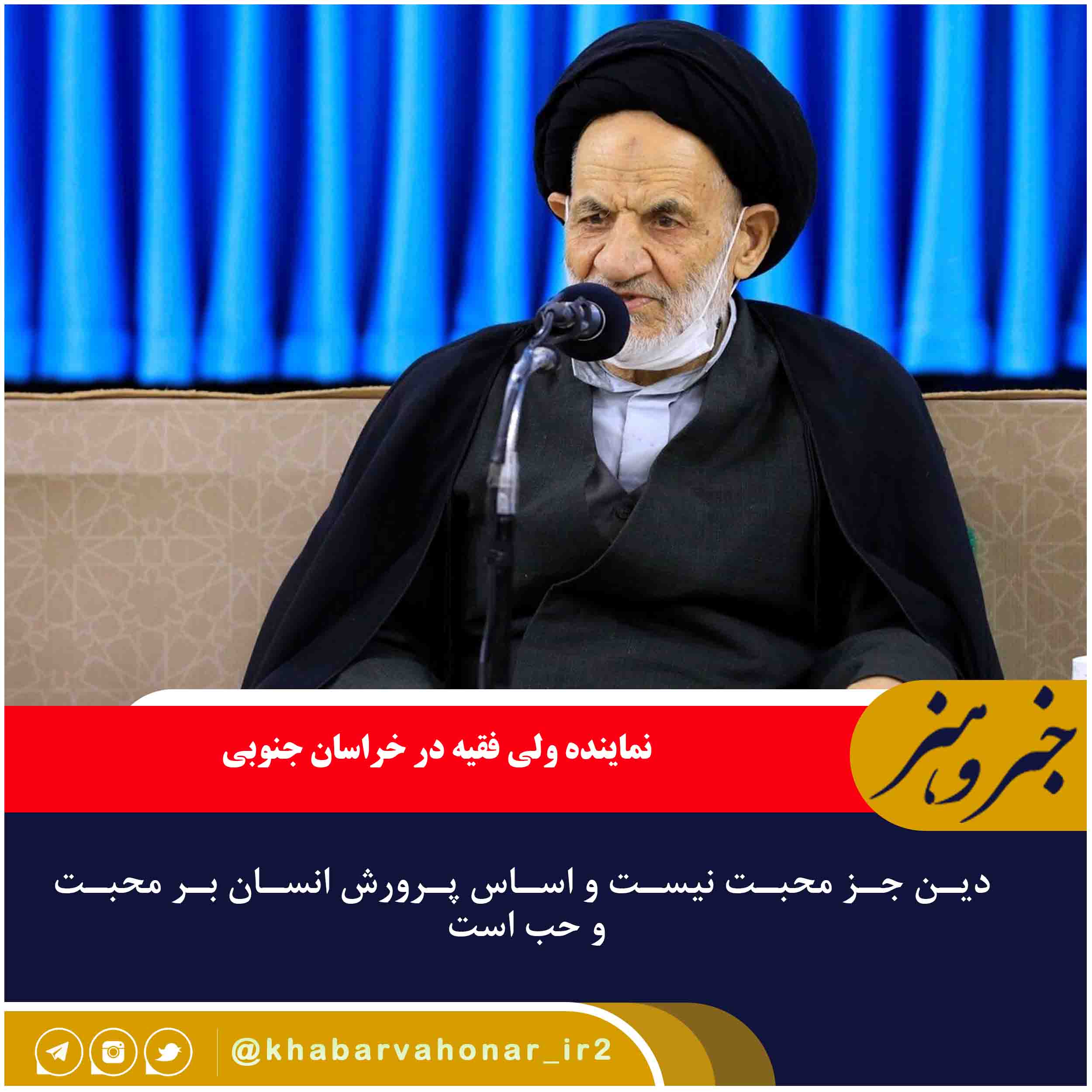 نماینده ولی فقیه در خراسان جنوبی و امام جمعه بیرجند گفت: دین جز محبت نیست و اساس پرورش انسان بر محبت و حب است.
