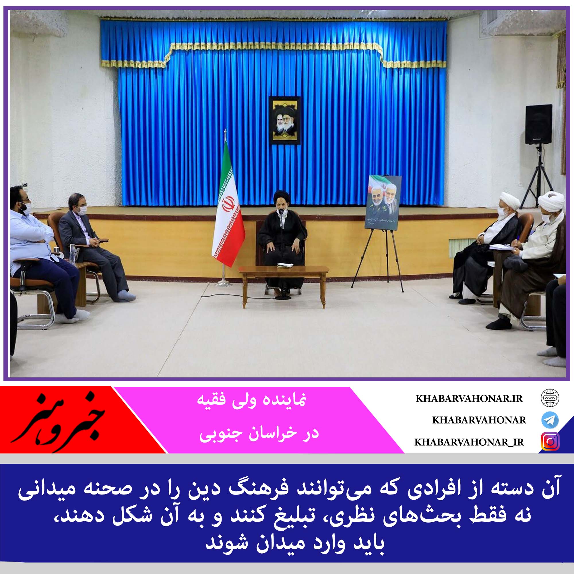 نماینده ولی فقیه در خراسان جنوبی و امام جمعه بیرجند گفت: آن دسته از افرادی که میتوانند فرهنگ دین را در صحنه میدانی نه فقط بحثهای نظری، تبلیغ کنند و به آن شکل دهند، باید وارد میدان شوند.