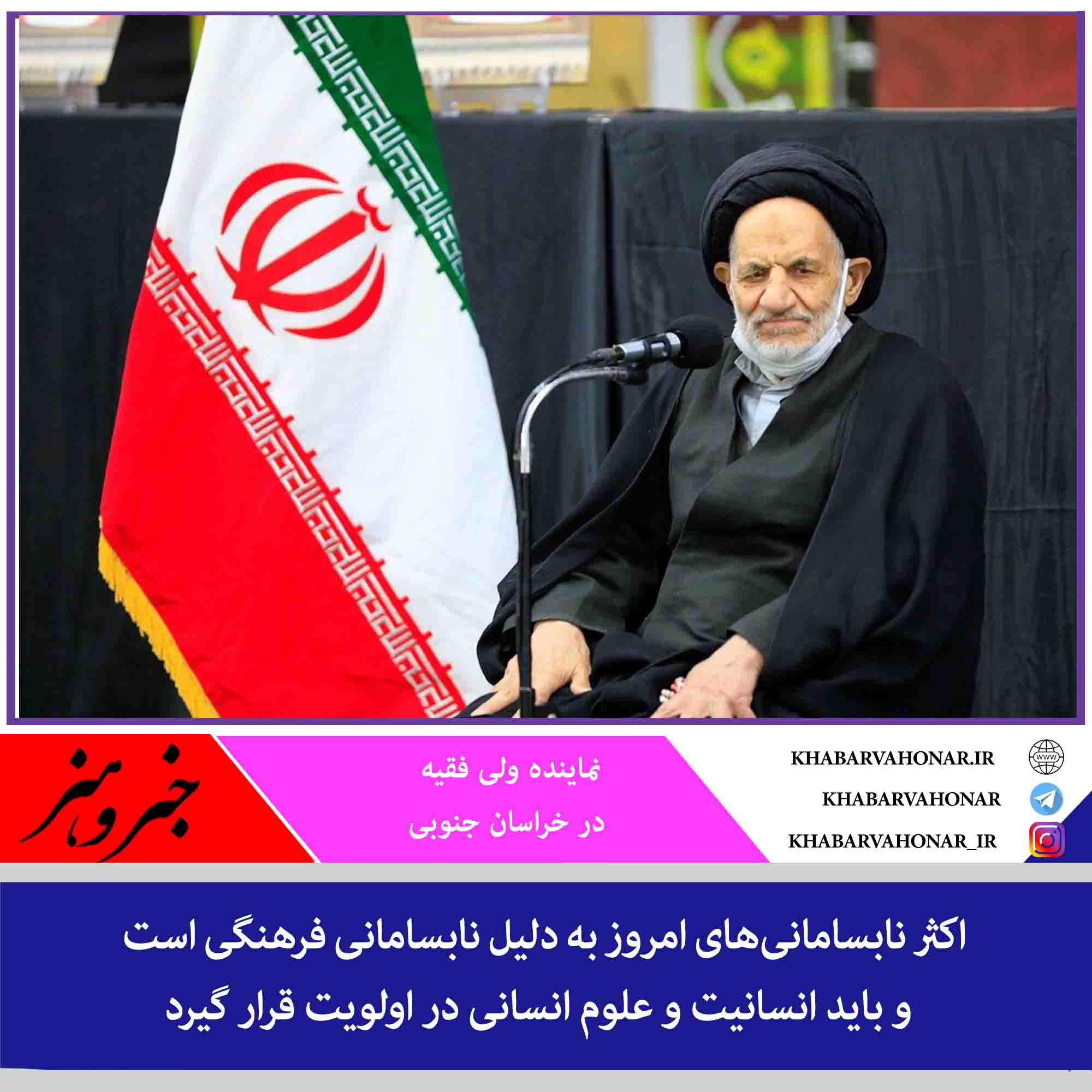 نماینده ولی فقیه در خراسان جنوبی و امام جمعه بیرجند گفت: اکثر نابسامانیهای امروز به دلیل نابسامانی فرهنگی است و باید انسانیت و علوم انسانی در اولویت قرار گیرد.