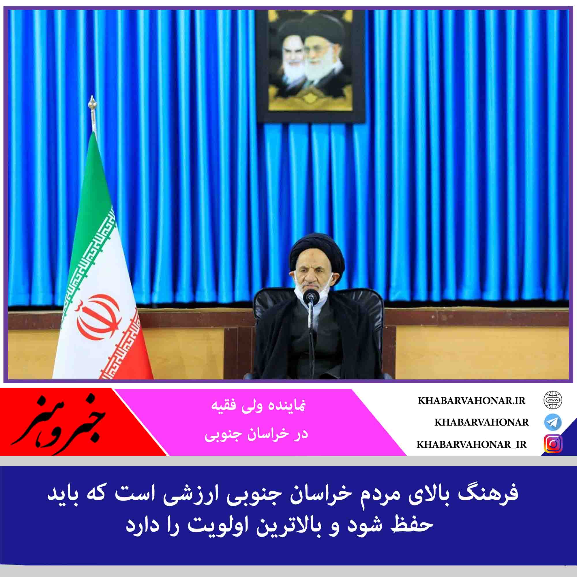 نماینده ولی فقیه در خراسان جنوبی و امام جمعه بیرجند گفت: فرهنگ بالای مردم خراسان جنوبی ارزشی است که باید حفظ شود و بالاترین اولویت را دارد.