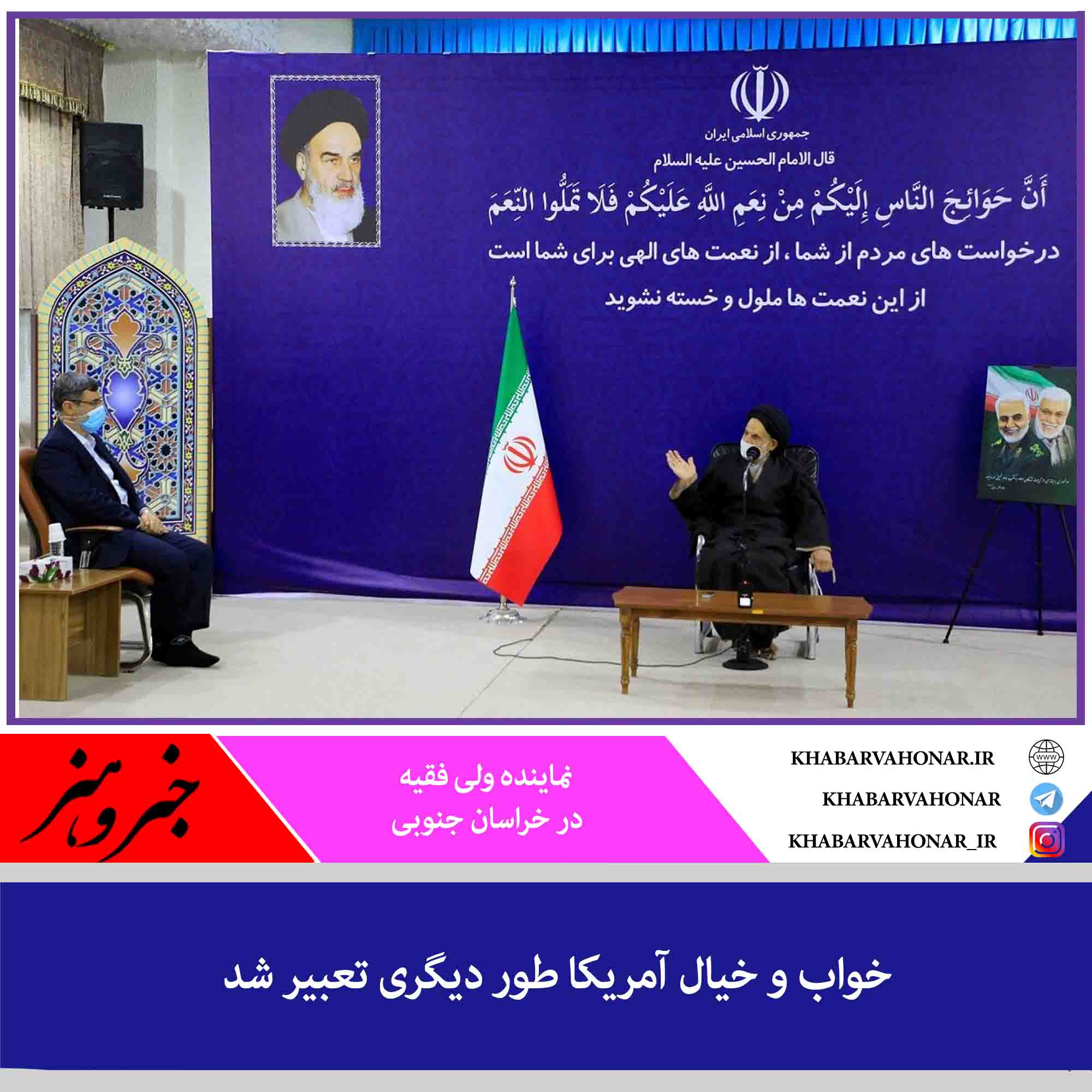 نماینده ولی فقیه در خراسان جنوبی و امام جمعه بیرجند گفت: آمریکا برای ما خواب و خیال دیگری میدید اما شکل دیگری تعبیر شد.