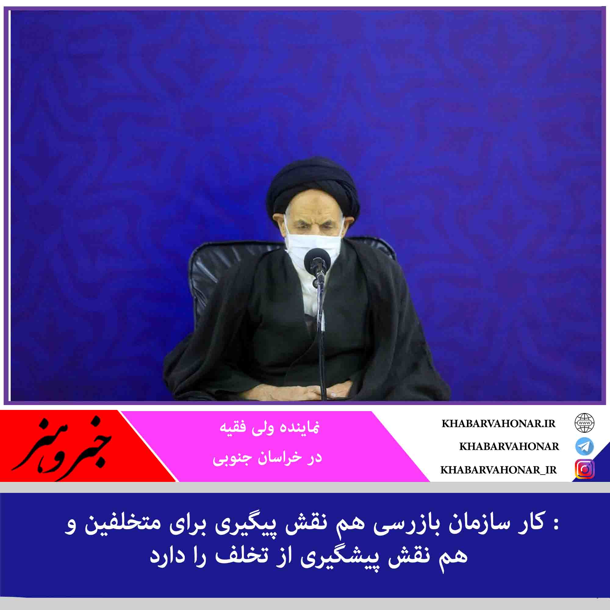 نماینده ولی فقیه در خراسان جنوبی و امام جمعه بیرجند گفت: کار سازمان بازرسی هم نقش پیگیری برای متخلفین و هم نقش پیشگیری از تخلف را دارد.