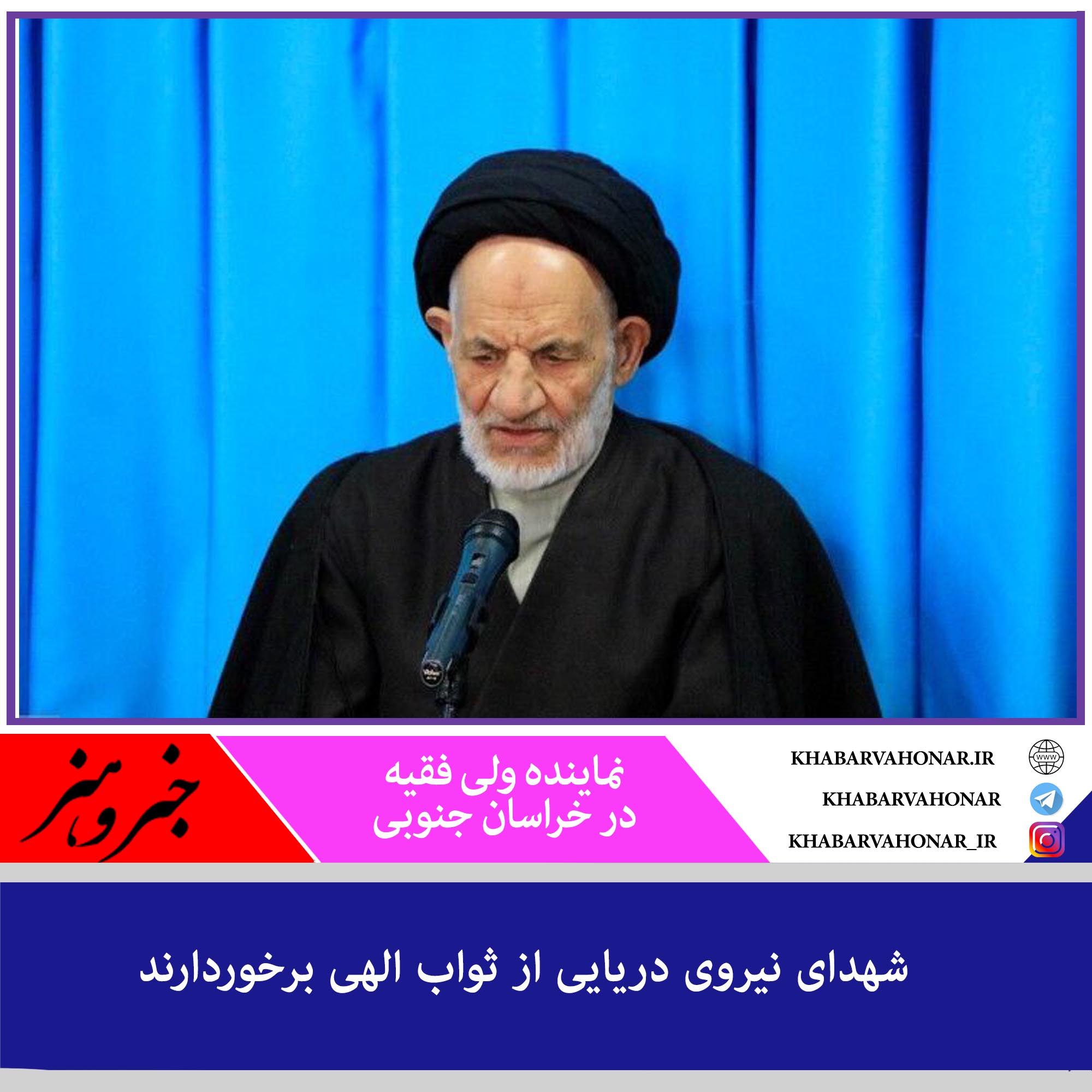 نماینده ولی فقیه در خراسان جنوبی و امام جمعه بیرجند در پیامی با تسلیت شهادت جمعی از دریادلان نیروی دریایی ارتش جمهوری اسلامی ایران گفت: این شهدای والامقام از پاداش و ثواب الهی برخوردارند.