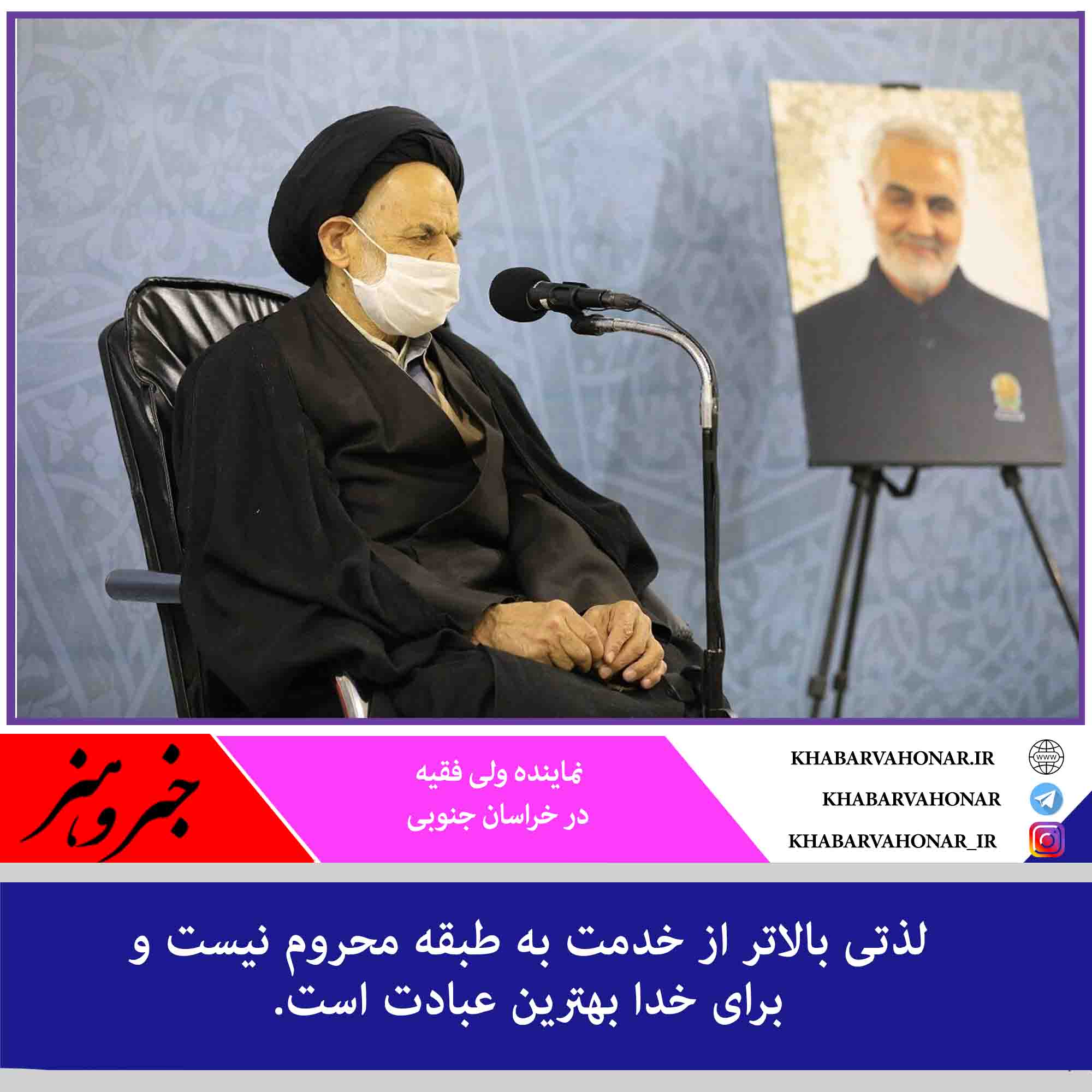 نماینده ولی فقیه در خراسان جنوبی و امام جمعه بیرجند گفت: لذتی بالاتر از خدمت به طبقه محروم نیست و برای خدا بهترین عبادت است.