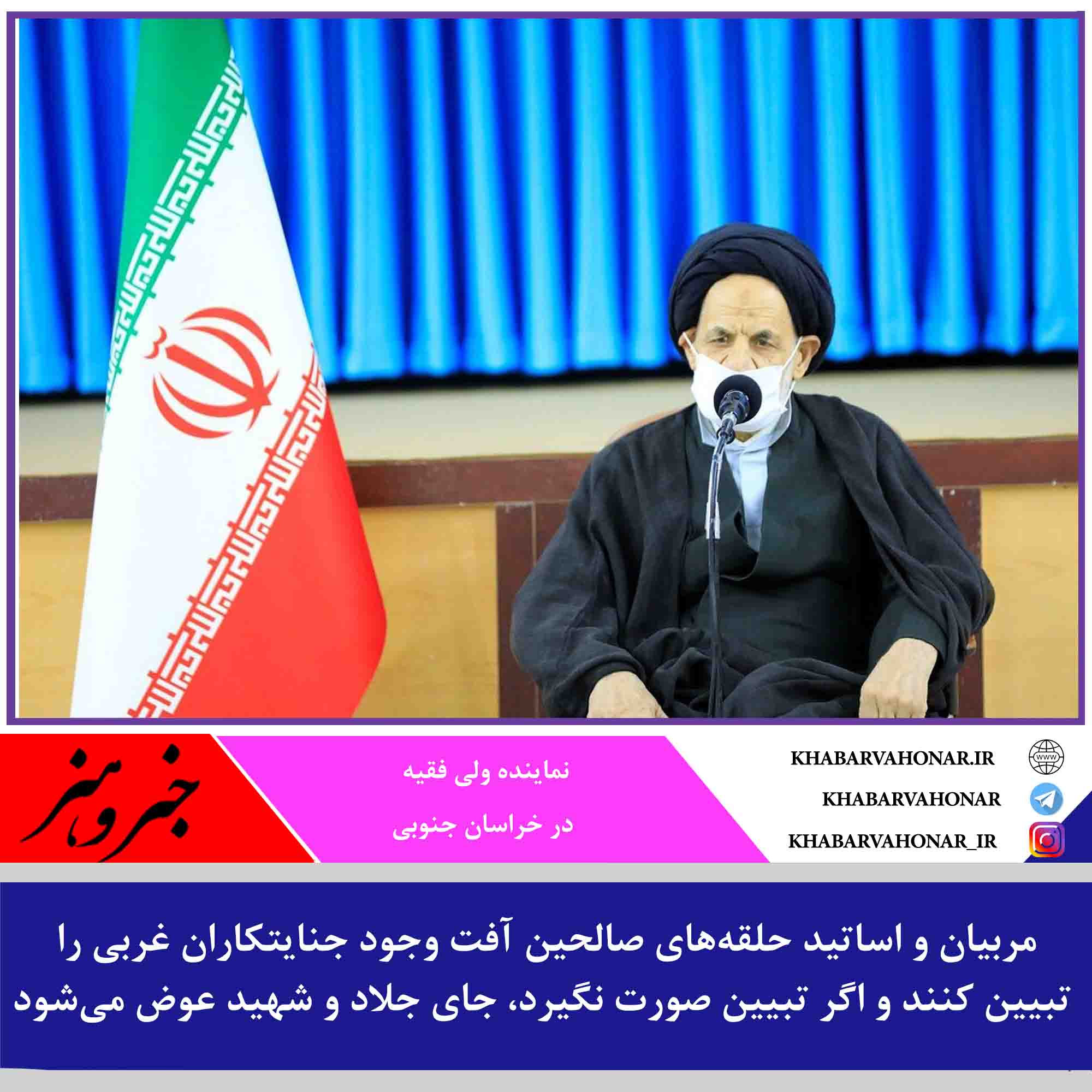 نماینده ولی فقیه در خراسان جنوبی و امام جمعه بیرجند گفت: مربیان و اساتید حلقههای صالحین آفت وجود جنایتکاران غربی را تبیین کنند و اگر تبیین صورت نگیرد، جای جلاد و شهید عوض میشود.