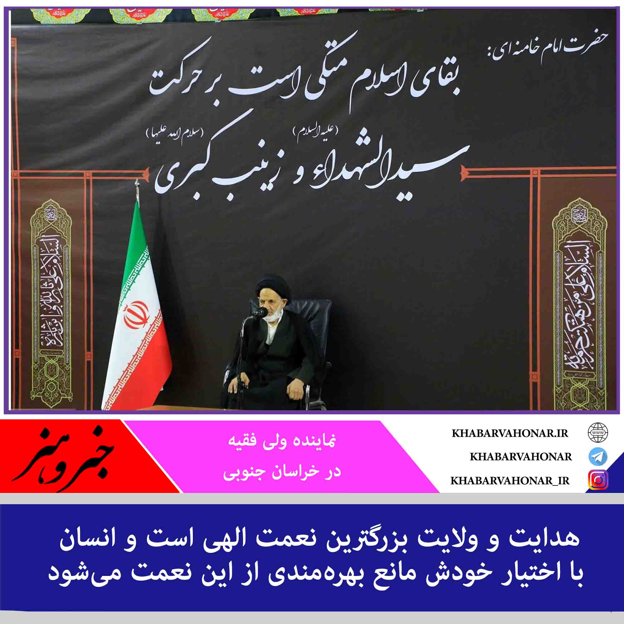 نماینده ولی فقیه در خراسان جنوبی و امام جمعه بیرجند گفت: هدایت و ولایت بزرگترین نعمت الهی است و انسان با اختیار خودش مانع بهرهمندی از این نعمت میشود.
