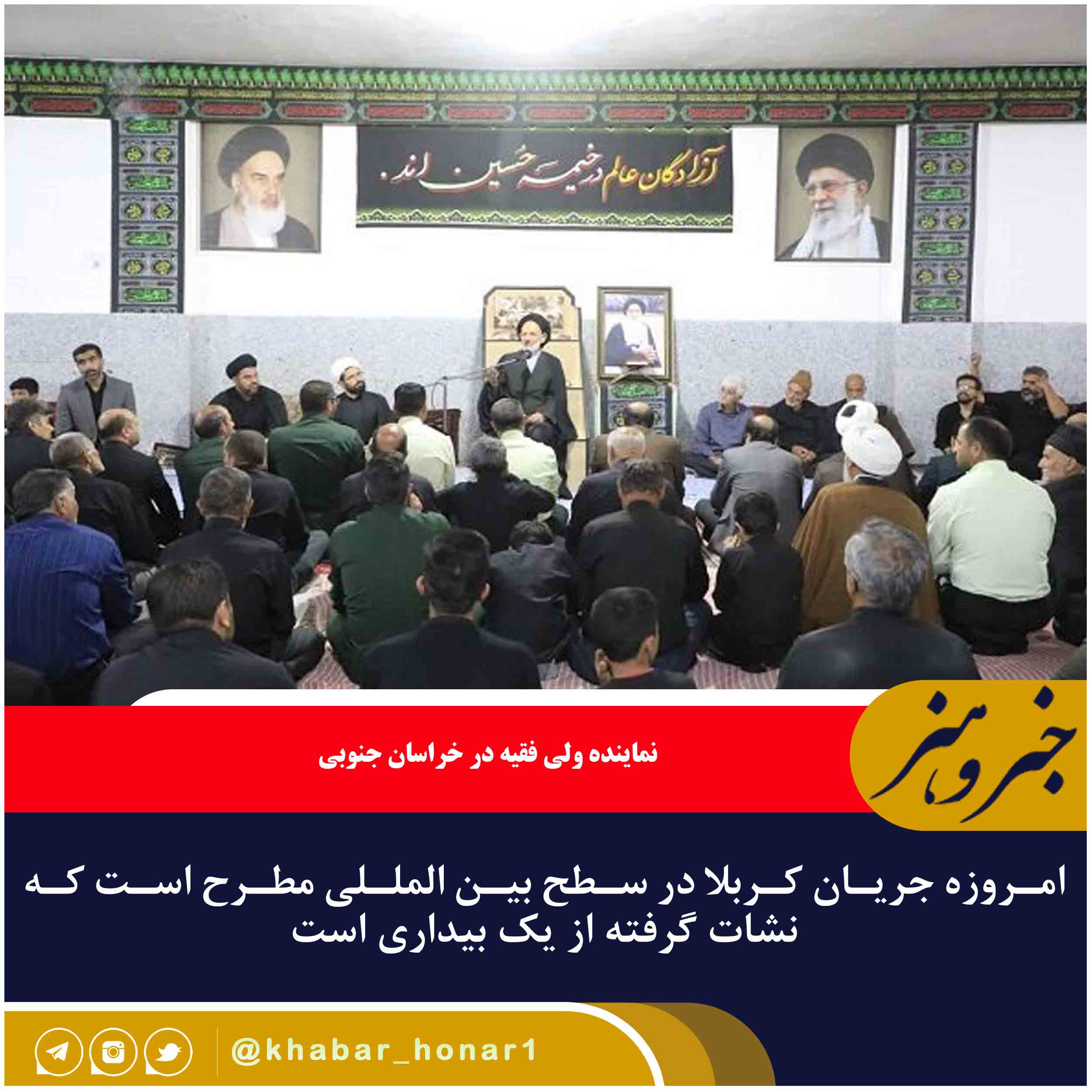 نماینده ولی فقیه در خراسان جنوبی گفت: امروزه جریان کربلا در سطح بین المللی مطرح است که نشات گرفته از یک بیداری است.