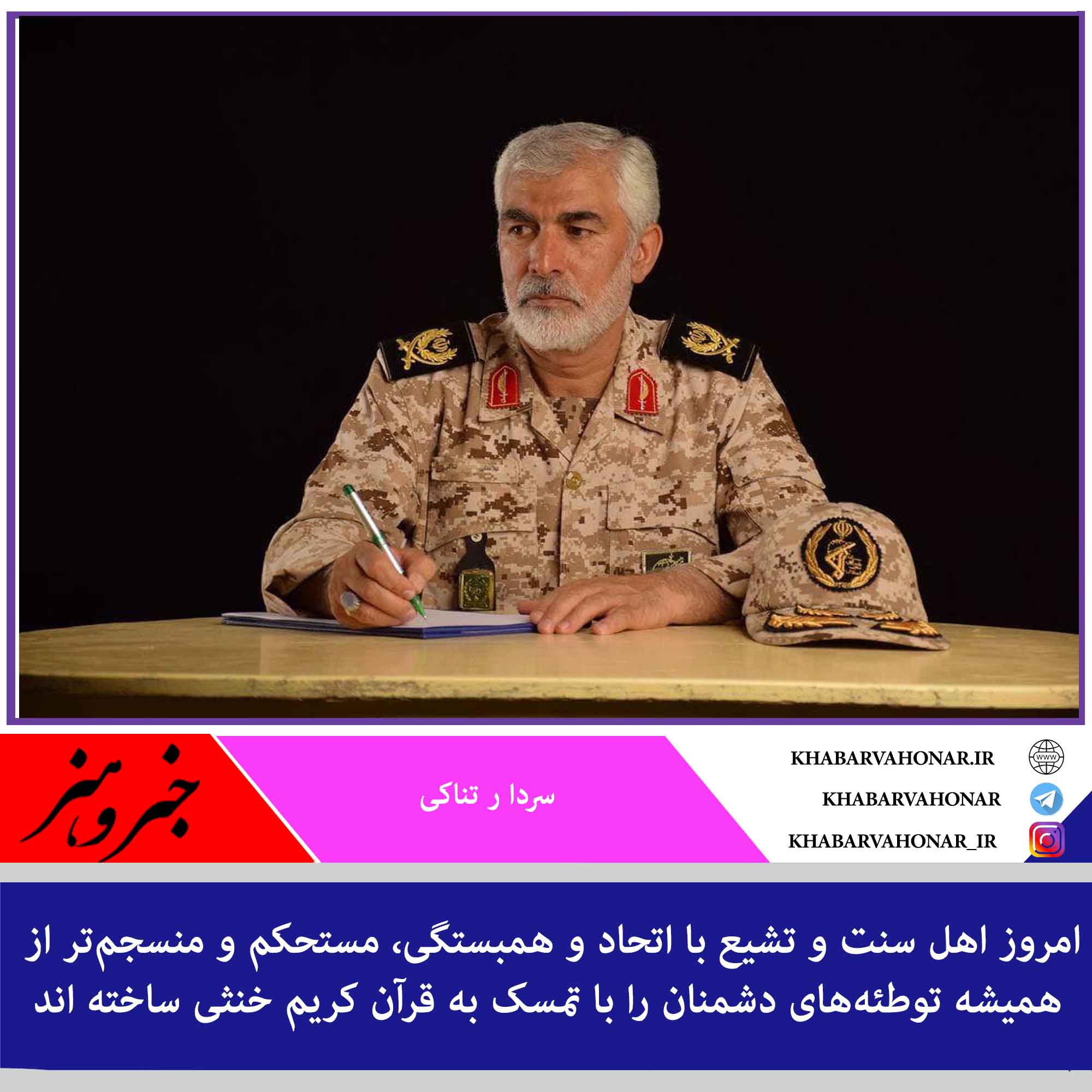 امروز اهل سنت و تشیع با اتحاد و همبستگی، مستحکم و منسجمتر از همیشه توطئههای دشمنان را با تمسک به قرآن کریم خنثی ساخته اند.