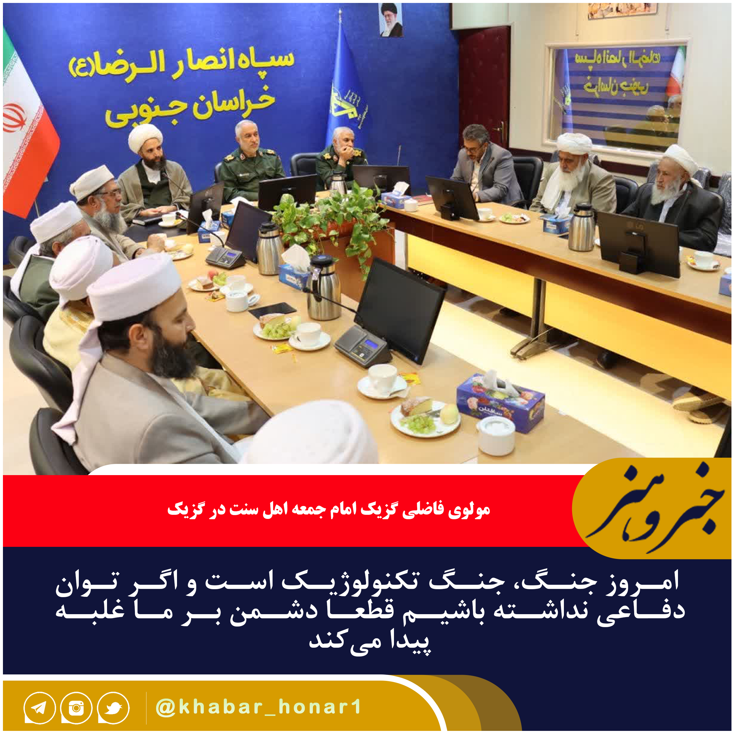 مولوی فاضلی گزیک امام جمعه اهل سنت در گزیک در این دیدار گفت: امروز جنگ، جنگ تکنولوژیک است و اگر توان دفاعی نداشته باشیم قطعا دشمن بر ما غلبه پیدا میکند و امیدواریم روزبهروز مقتدرترین باشیم.